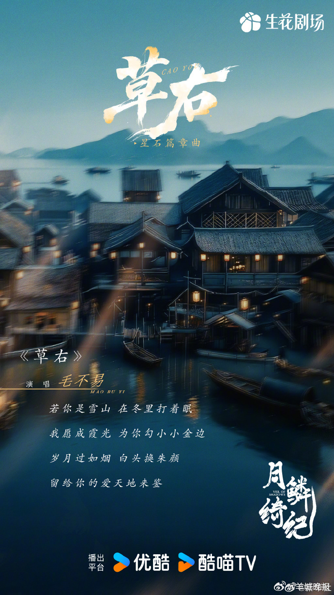 【#月鳞绮纪OST歌词海报#】由主演的《月鳞绮纪》正在热播中。多首弦音雅律,织就月鳞听觉绮境。你最喜欢哪位歌手的演绎?《月之纪》《草木不言,雾露为衣》《一千一万朵》《草右》《借一场浮光掠影》知否##迪丽热巴补偿去巴黎的粉丝##王濛公司大部分是退役运动员#(编辑:杨雨桐;审签:岑杰昌)