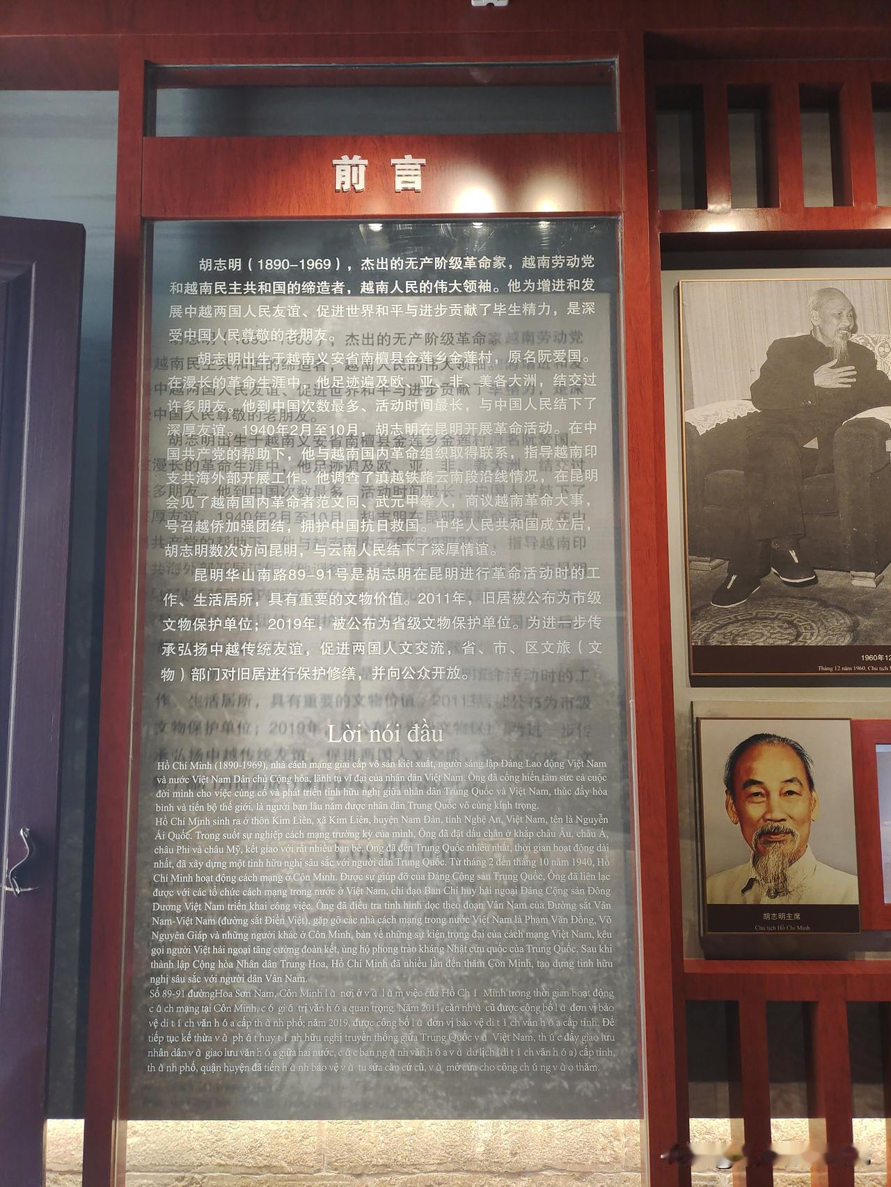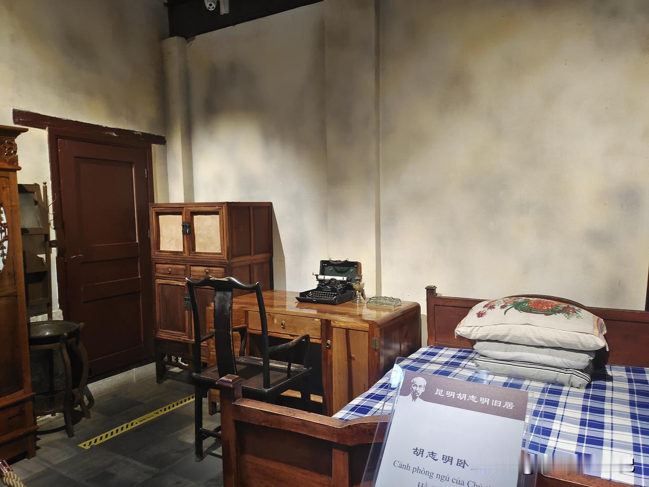 【参观昆明胡志明旧居】去了两次,第一次是夜晚,旧居闭馆。第二次是离开昆明前。昆明华山南路89-91号是胡志明在昆明进行革命活动时的工作、生活居所,具有重要的文物价值。2011年,胡志明旧居被公布为昆明市级文物保护单位;2019年,被公布为云南省级文物保护单位。为进一步传承弘扬中越传统友谊,促进两国人文交流,省、市、区文旅(文物)部门对旧居进行保护修缮,并向公众开放。