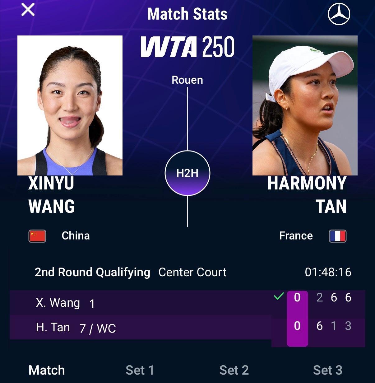 王欣瑜2-6/6-1/6-3逆转哈莫尼-谭,晋级鲁昂250正赛。首轮可能抽到:拉