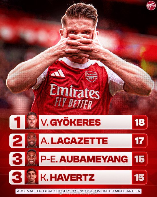 约克雷斯这个赛季能打进多少进球?🇸🇪 维克托·约克雷斯:25/26赛季 18球🇫🇷 亚历山大·拉卡泽特:20/21赛季 17球🇬🇦 皮埃尔-埃默里克·奥巴梅扬:20/21赛季 15球🇩🇪 凯·哈弗茨:24/25赛季 15球 阿森纳1比2伯恩茅斯 阿森纳著名教授