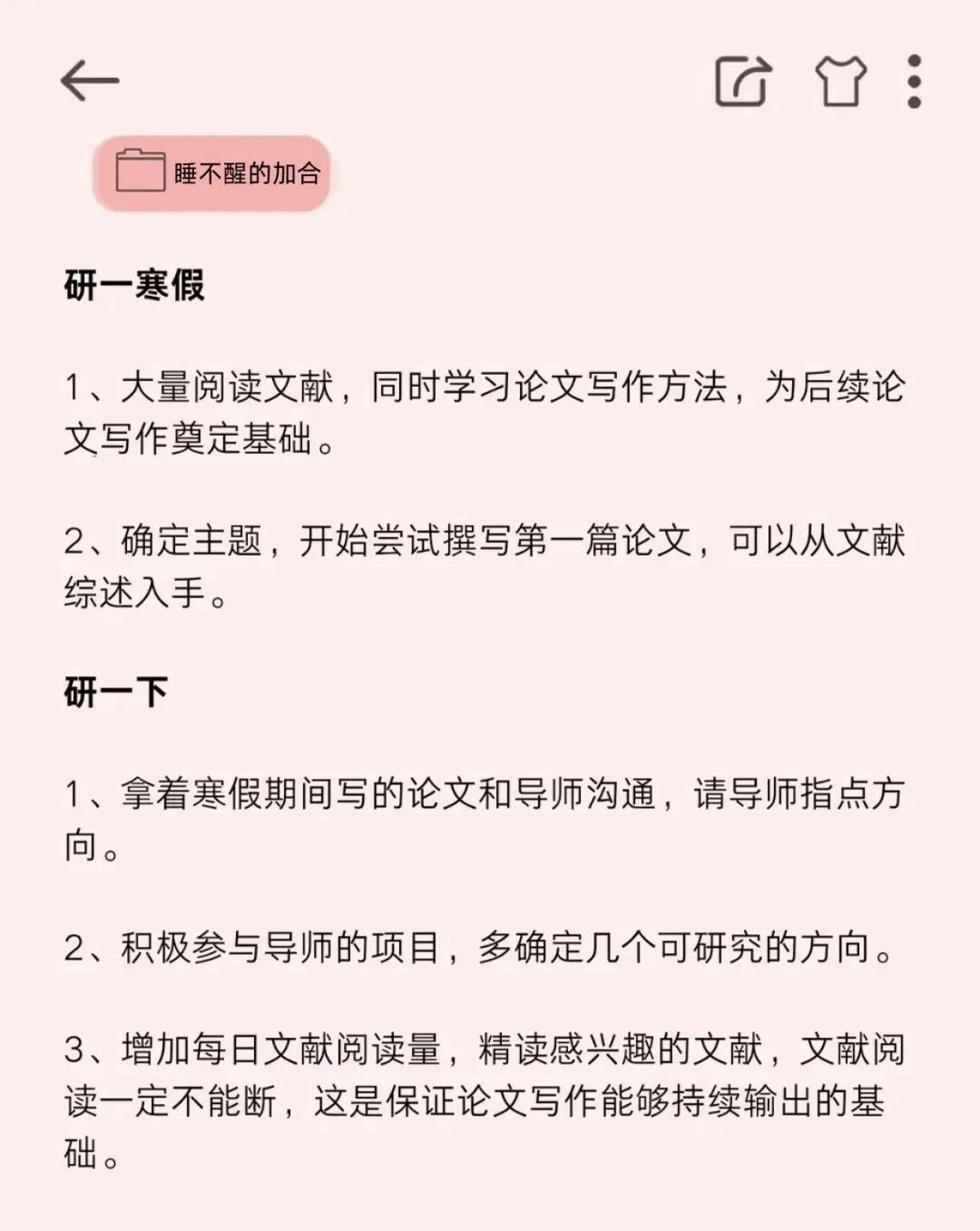 3、每日必须保持一定的文献阅读量,这一阶段可泛读,养成良好阅读习惯,方向可以视自己所学专业而定。