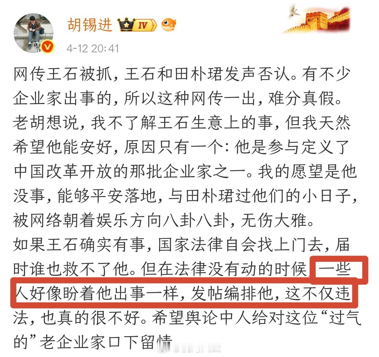 王石否认被抓王石 秦枫哈哈哈,表面上佛系的胡锡进,原来也是挺记仇的嘛,有意思
