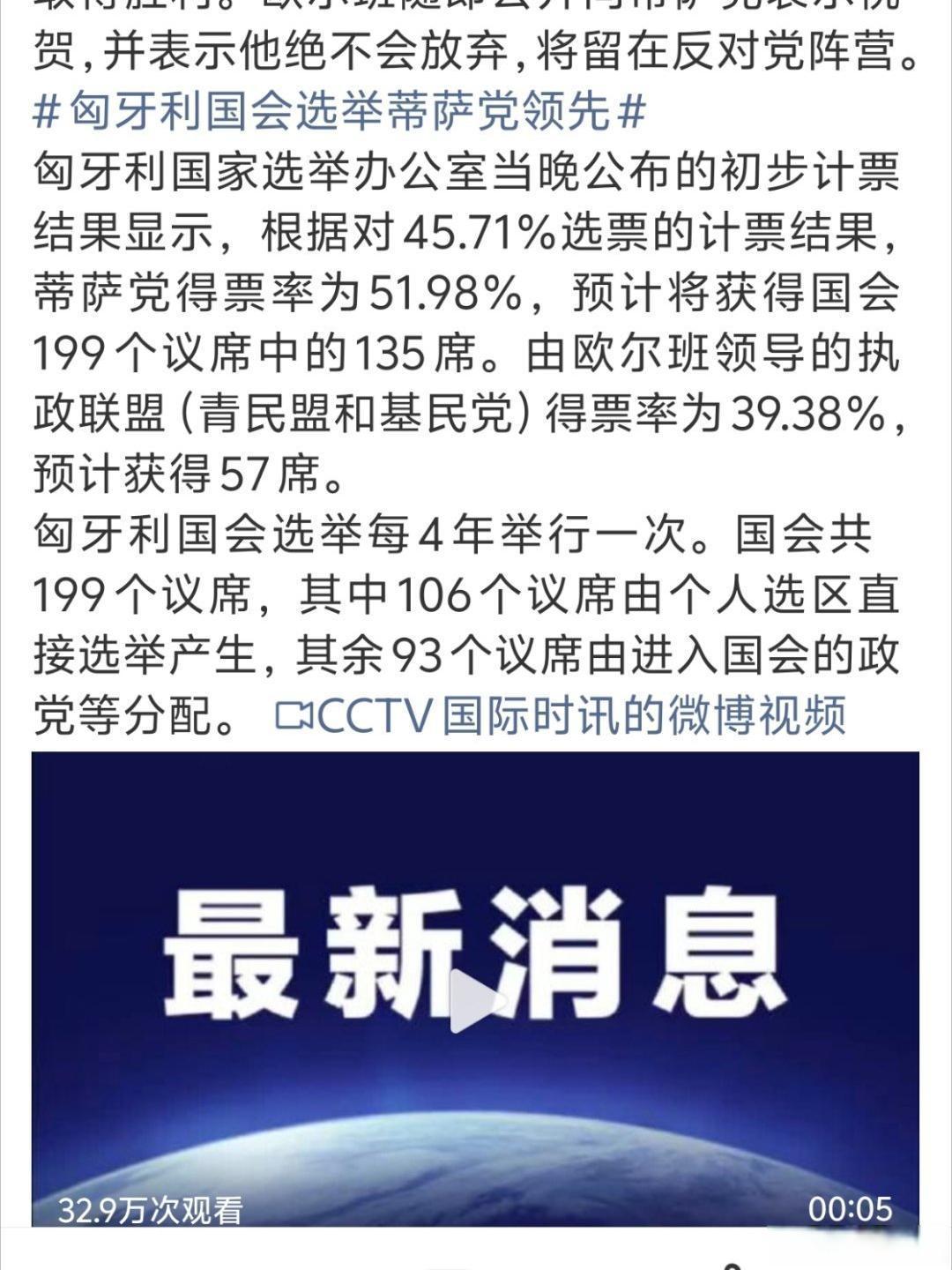当地时间4月12日,匈牙利政坛大地震。蒂萨党主席毛焦尔·彼得宣布赢得国会选举,终结了欧尔班自2010年以来的长期执政。初步计票显示,蒂萨党斩获约54%选票,豪取国会199席中的138席,锁定绝对多数。欧尔班阵营得票率仅38%左右,大势已去。
