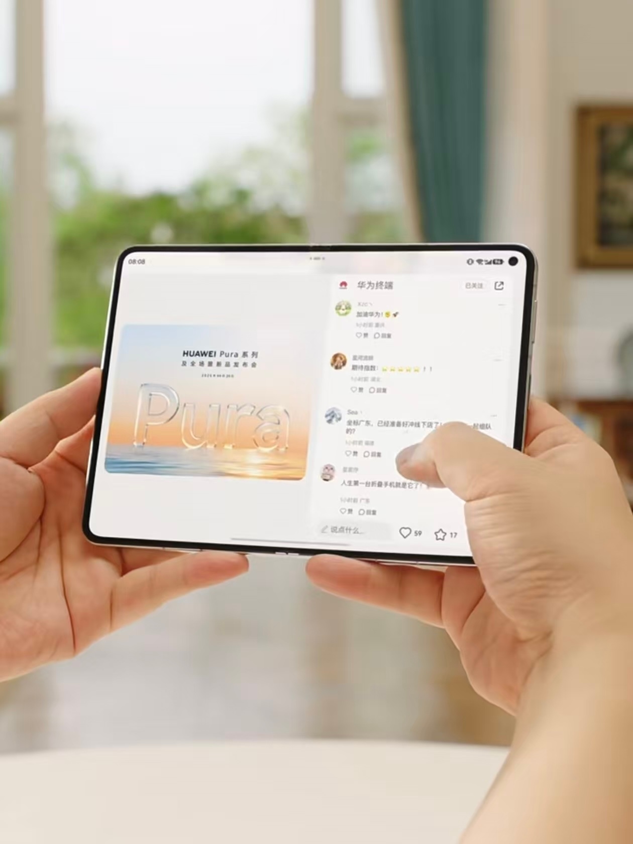 而且大阔折叠合起来很趁手,期待真机上手了!华为官宣大阔折命名puraxmax