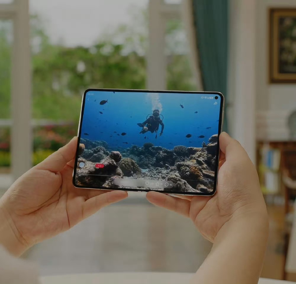 余承东首曝大阔折真机 这个形态看着好有意思,本身8英寸Pad就非常受欢迎,这次大阔折叠展开就是Pad mini。