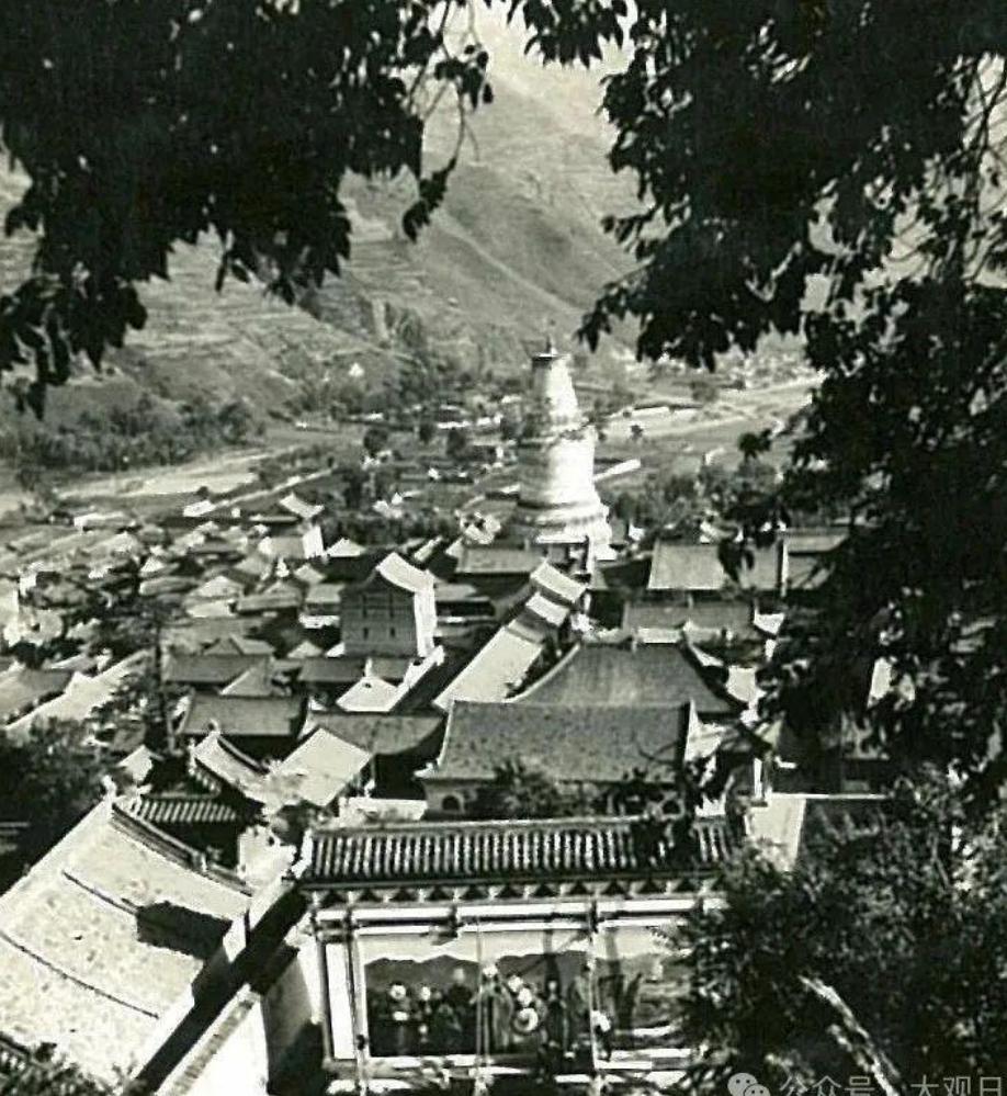1940年日军拍摄的五台山台怀镇全景。日军间谍(如僧人河南龙岩)曾在此潜伏3年,测绘根据地、刺探八路军布防 。