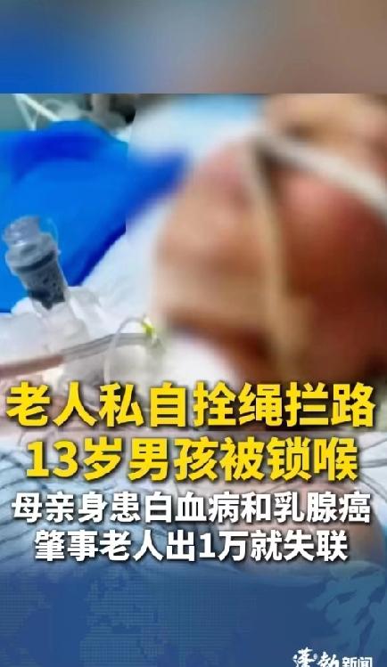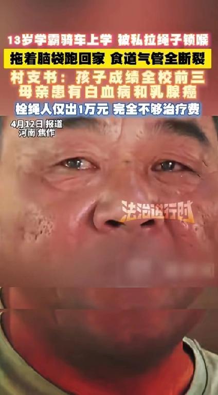 泪崩,13岁学霸男孩儿骑车上学被邻居私拉的绳子锁喉,食道气管全断裂,孩子拖着脑袋回家求助!
