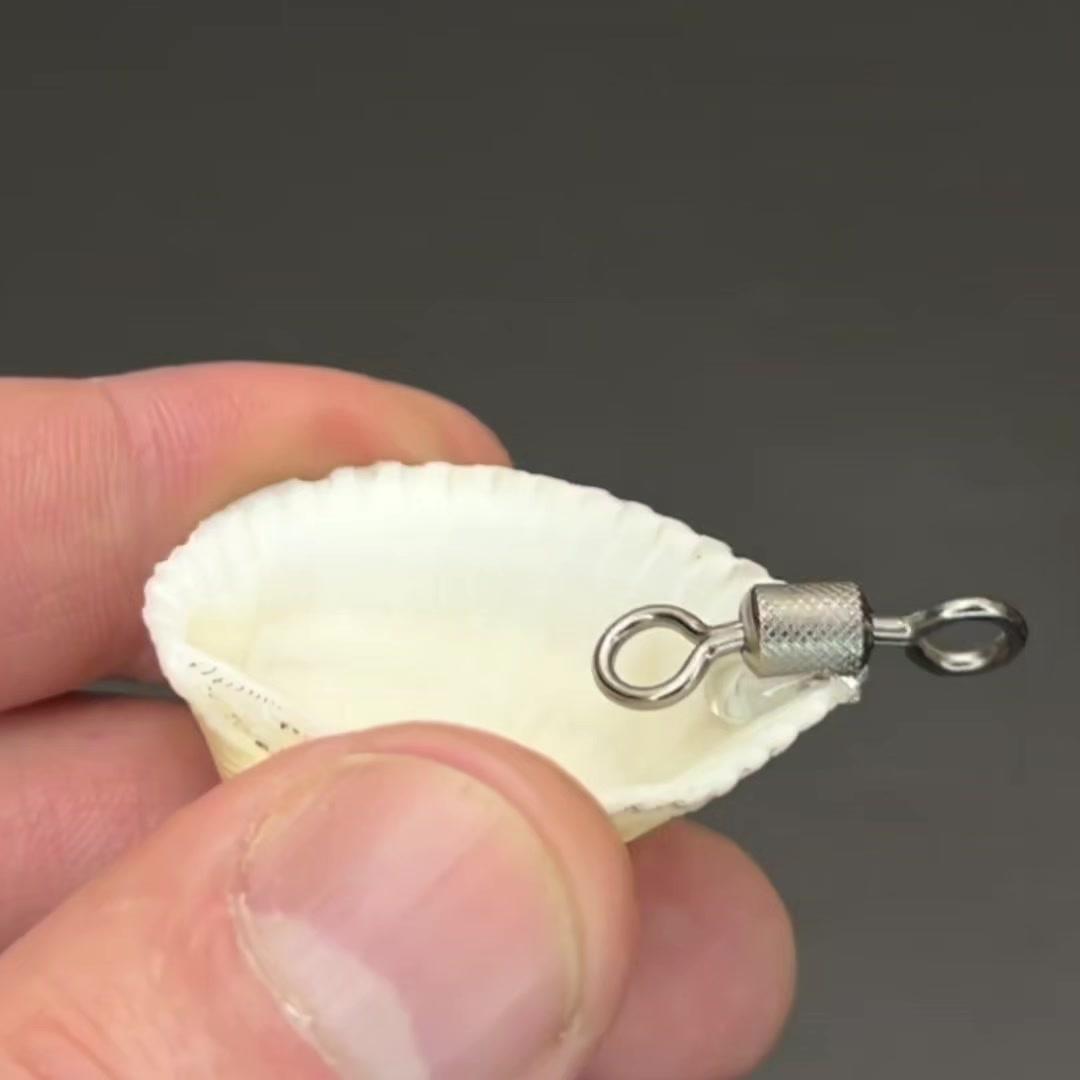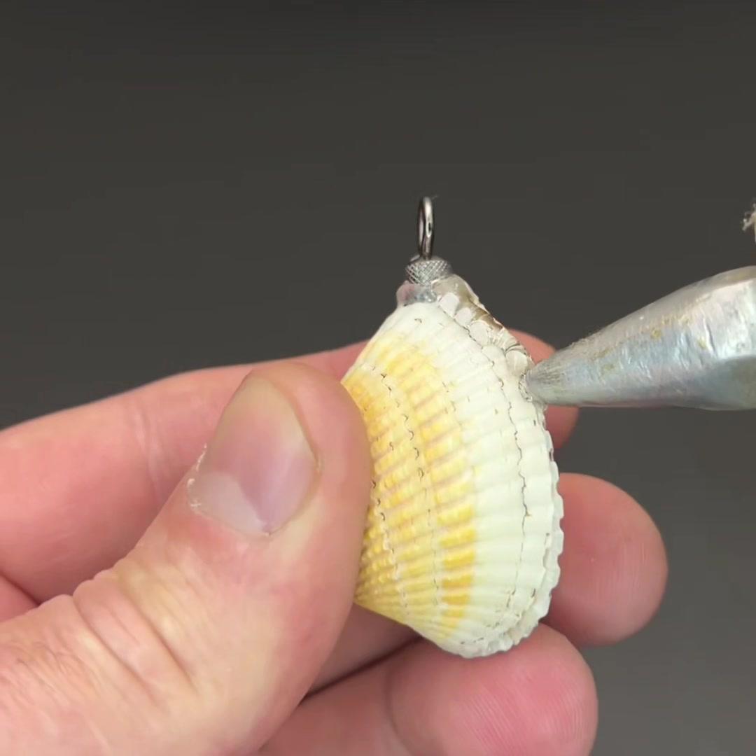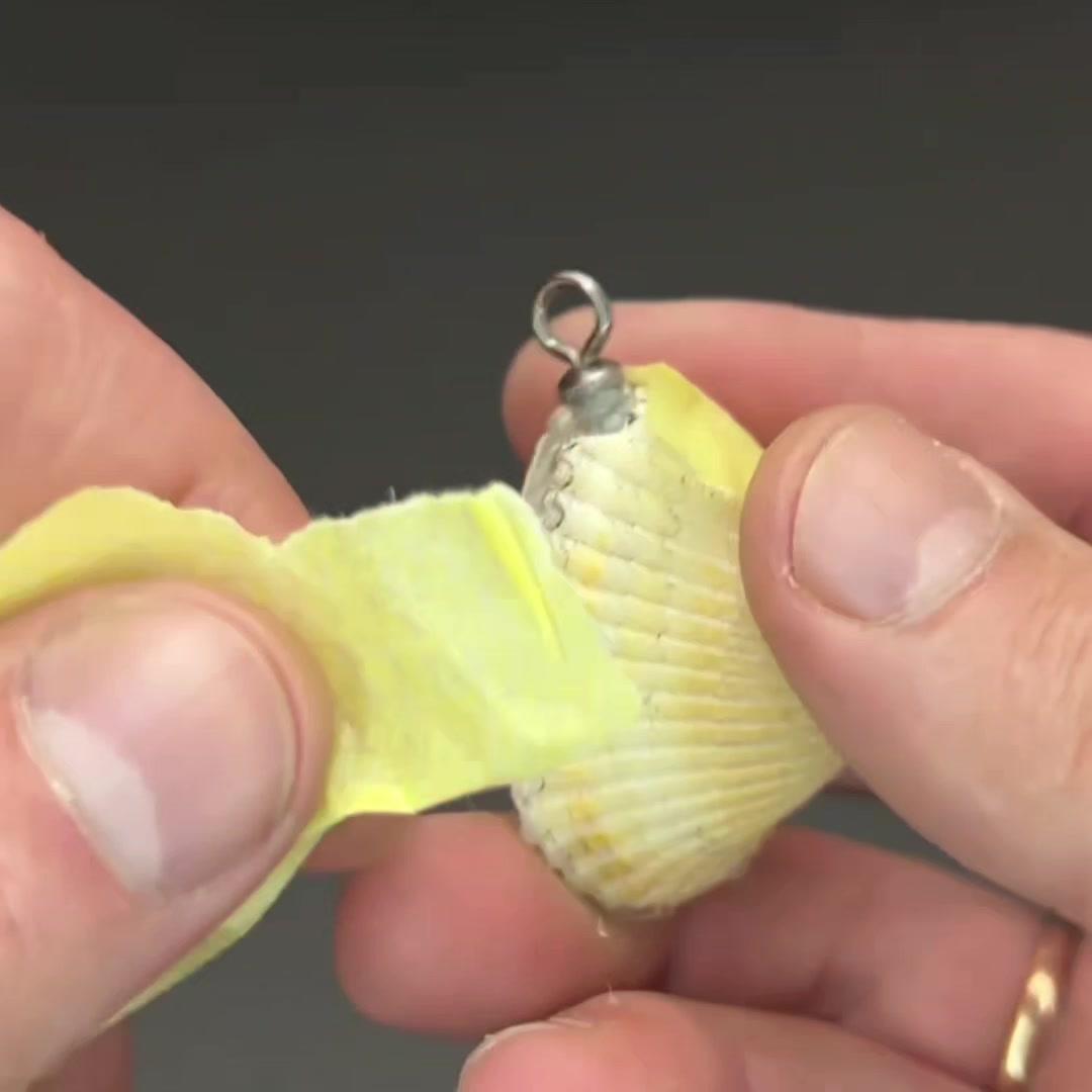 2️⃣铅皮包裹贝壳:用铅皮紧紧裹住贝壳,尽量让重量均匀,接口处用剪刀修整平整,确保铅坠整体能保持平衡。