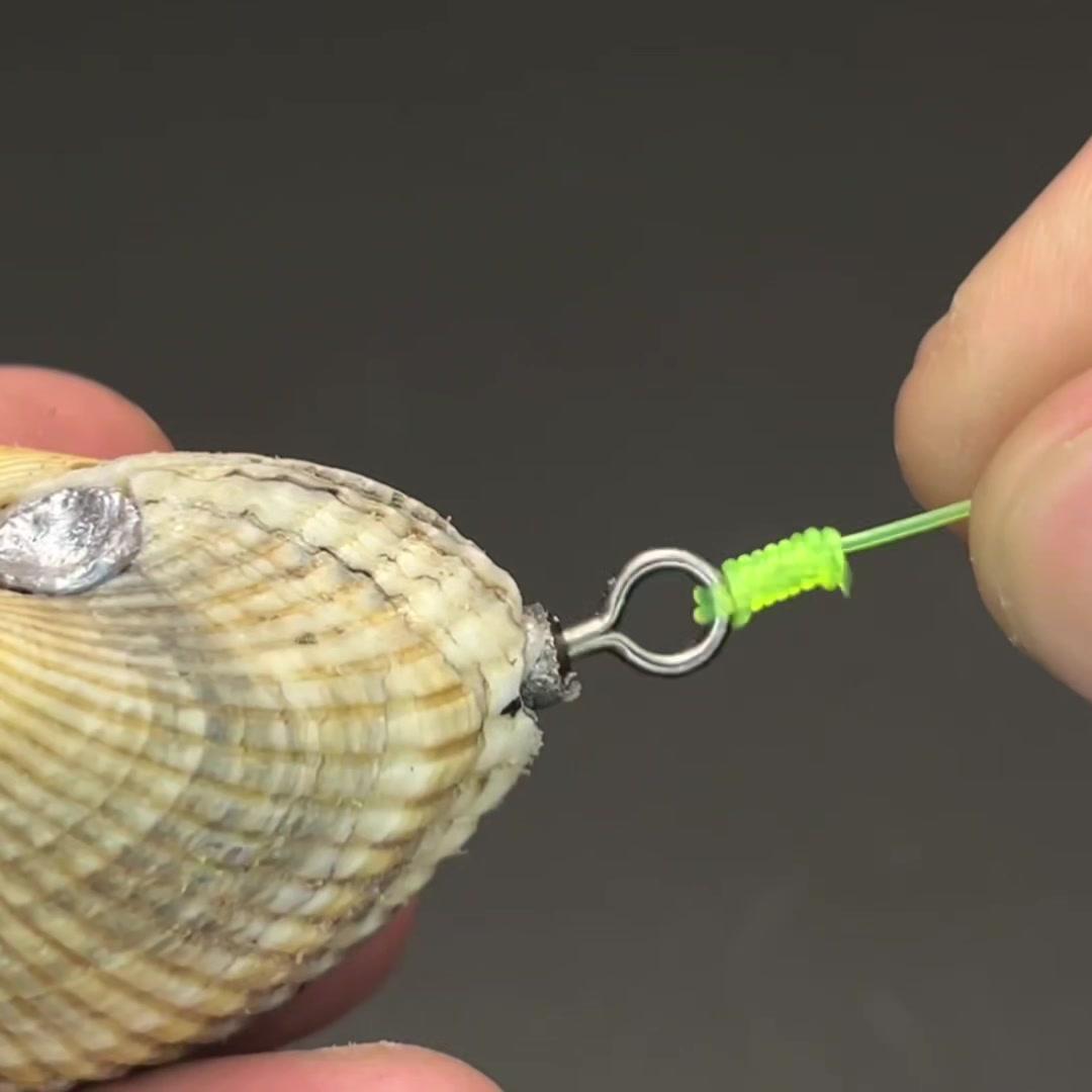 3️⃣制作连接环:剪一段鱼线(或连接环)绑在铅坠上方,方便连接鱼钩,这样就完成啦!