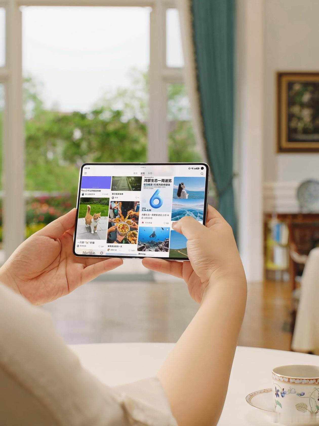 华为首款横向阔折叠手机来了,第一代阔折叠因为一句“人人都买得起”的口号被网友调侃