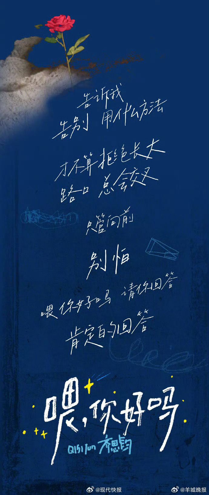 #齐思钧新歌里有乘风破浪披荆斩棘# 4月13日,是的生日,他发布了新歌《喂,你好吗》。发布了这首歌的歌词,同时表示,背后也许藏着一些关于遗憾的故事。有网友发现,歌词中既提到了《乘风破浪》也提到了《披荆斩棘》,据了解,这都是齐思钧主持过的综艺,他也被赞“定海神针式控场者”。(现代快报)更多消息:#李楷灿 抓猪##李楷灿打游戏##徐艺洋竟然和孙怡合作过##IU新剧首播收视率##霍思燕最争气的是她自己#(编辑:惠天骄;审签:艾渝)