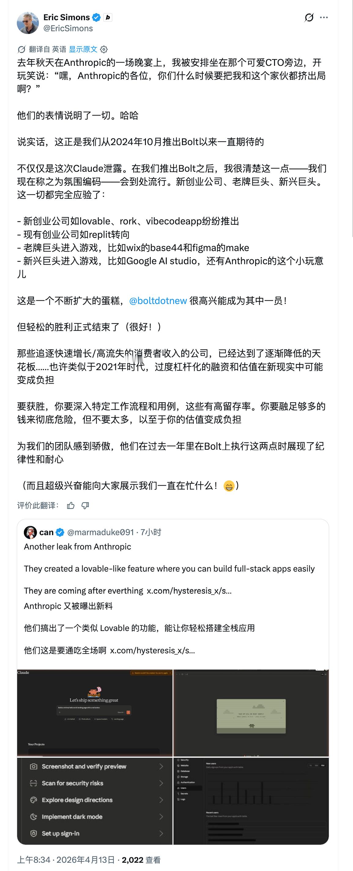 Anthropic 被曝即将上线 vibe coding 产品bolt CEO