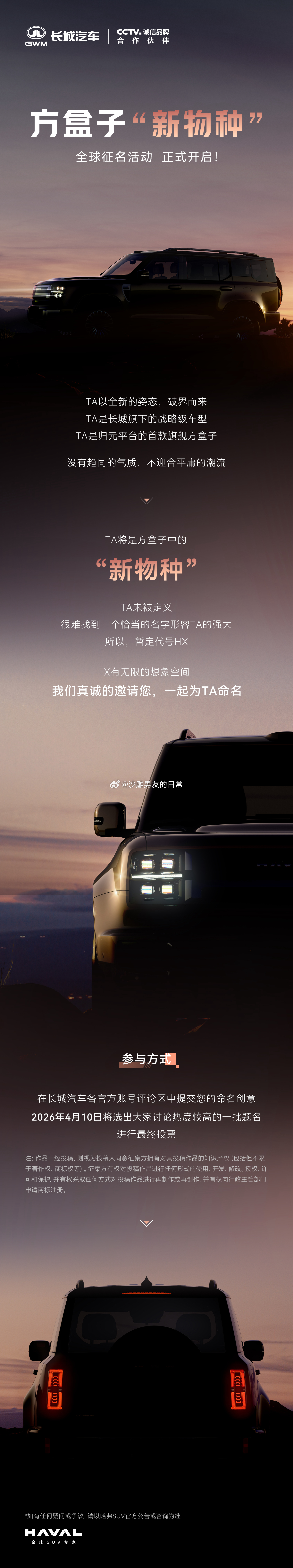 魏建军征名评论区吵翻天 方盒子新物种到底叫啥?目前哈弗HX呼声极高。从品牌年轻化