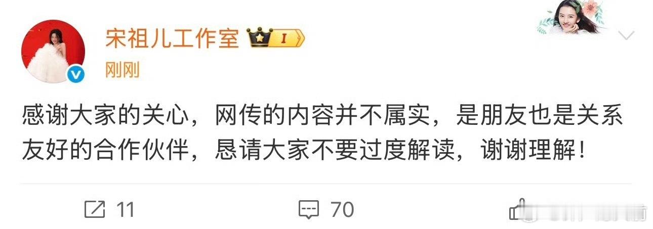 宋祖儿工作室回应了,说刘宇宁是朋友也是合作伙伴
