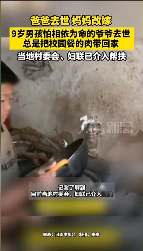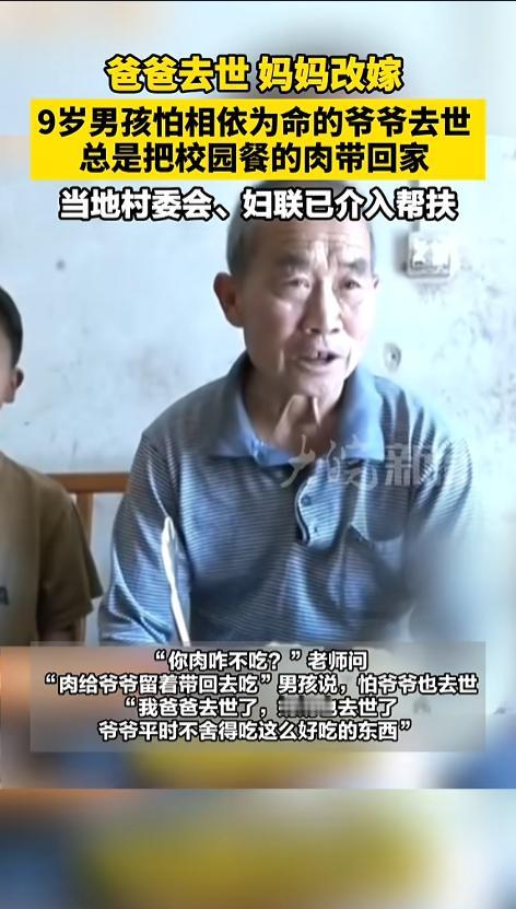 信息来源:《爸爸去世,妈妈改嫁 9岁男孩怕相依为命的爷爷去世 总是把校园餐的肉带回家 当地村委会、妇联已介入帮扶》大皖新闻