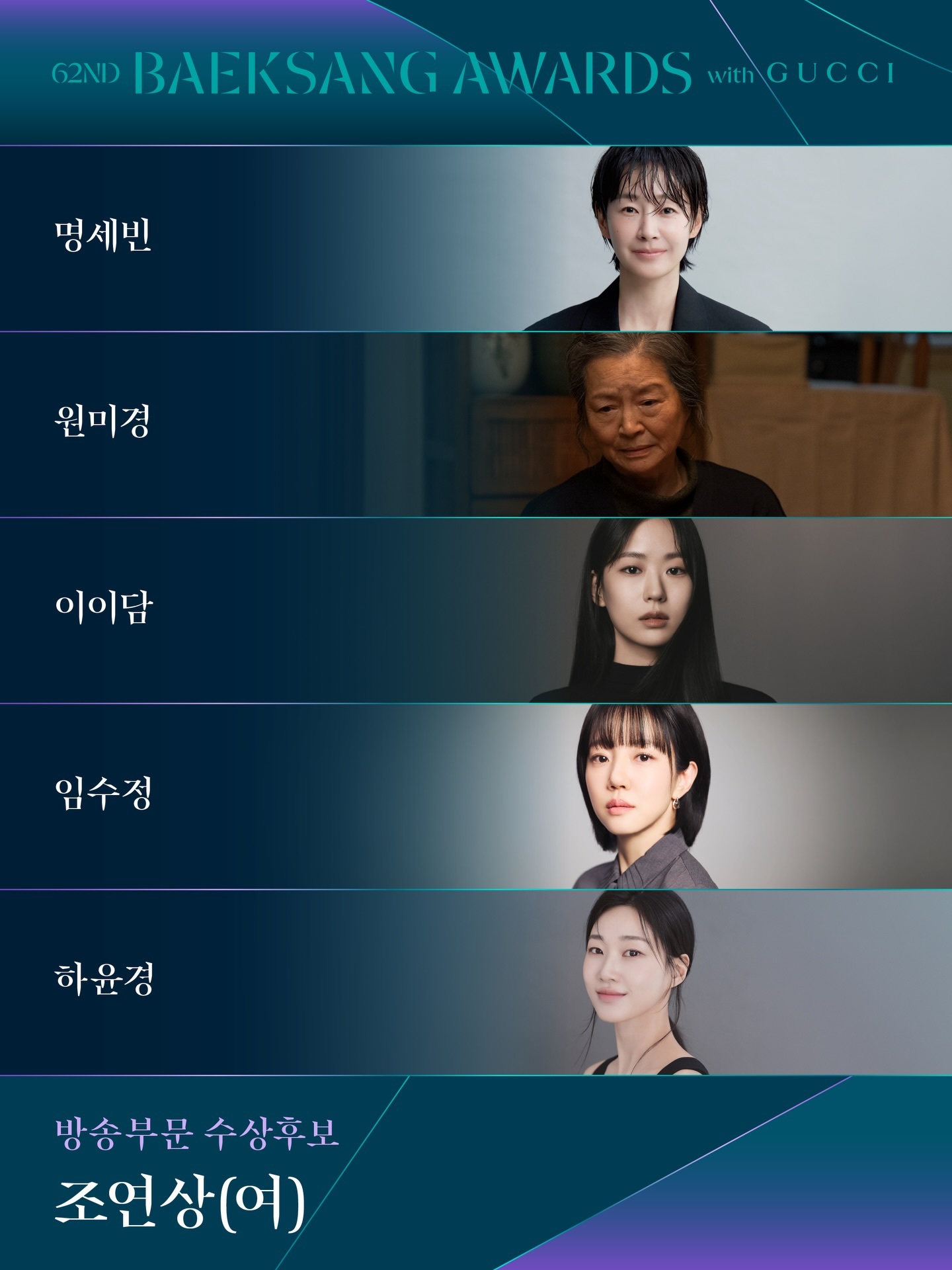图6 最佳女演员奖(视后)金高银《你和其余的一切》朴宝英《未知的首尔》朴智贤《你和其余的一切》申惠善《莎拉的真伪人生》林允儿《暴君的主厨》