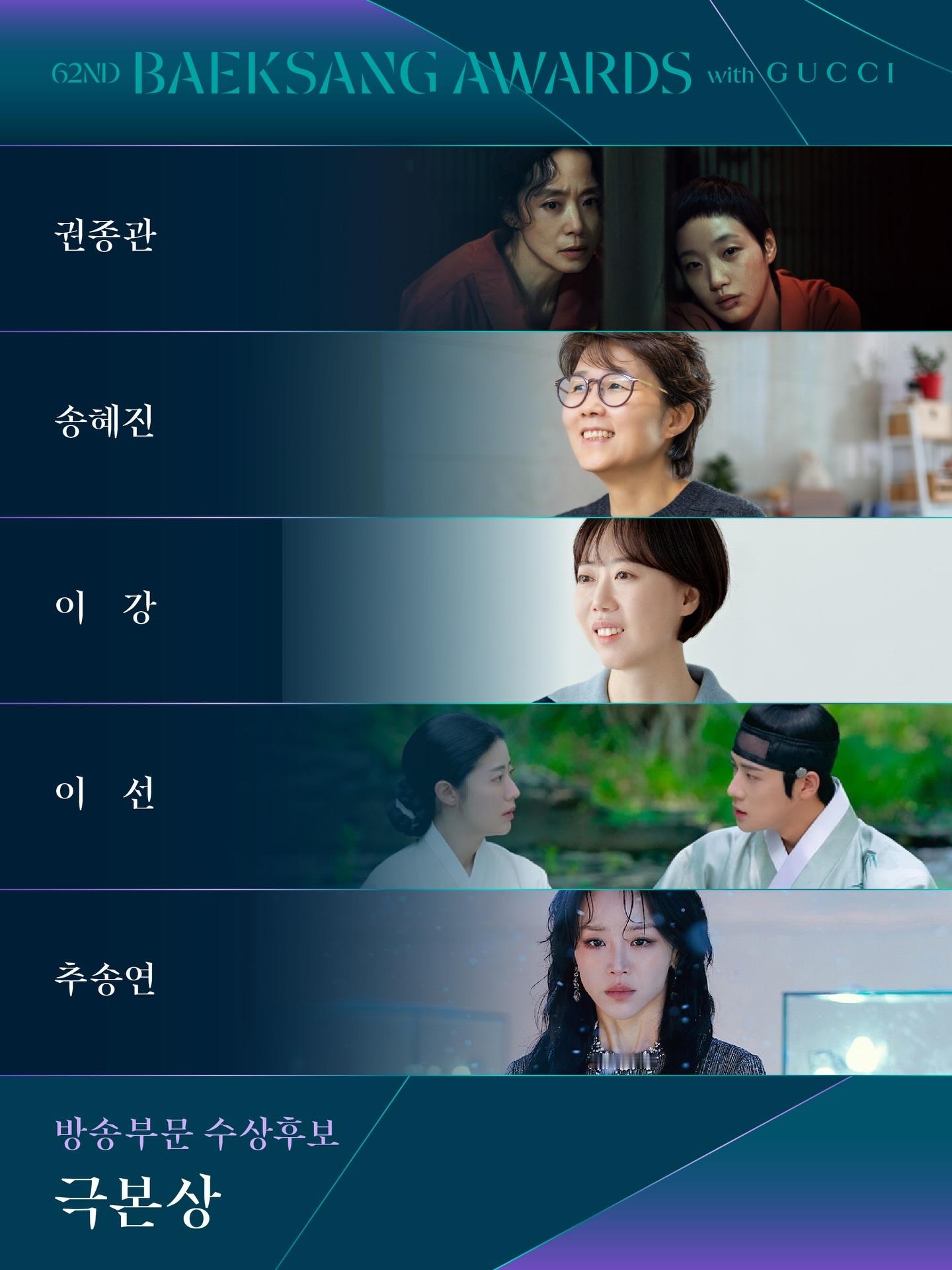 图3 最佳编剧奖权宗官《认罪之罪》宋慧珍《你和其余的一切》李江《未知的首尔》李善《恩爱的盗贼大人》秋淞然《莎拉的真伪人生》