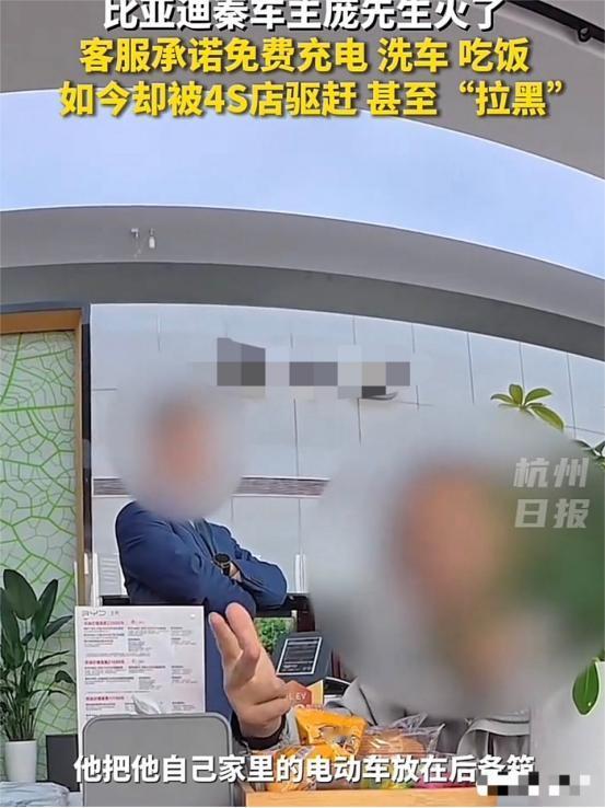 店员赶来劝阻,话没说两句就被他堵回去:“当初是你们自己说的,充电吃饭全免费!”