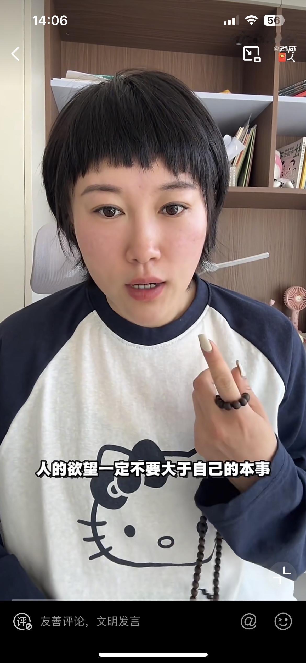 她最后有一句总结:人的欲望一定不要大于自己的本事。