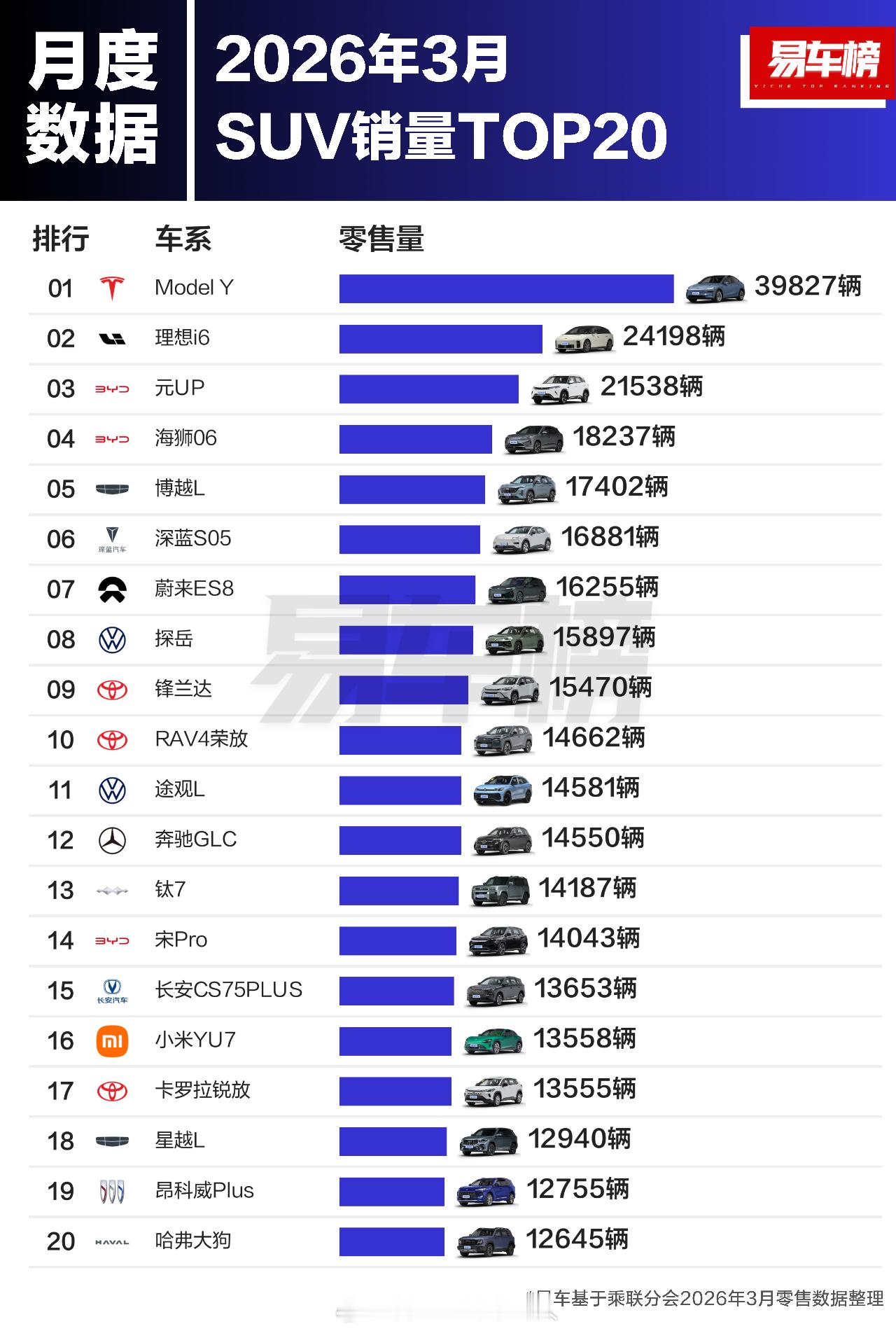2026年3月方盒子&硬派越野车型销量TOP20根据易车整理的乘联分会零售数据显