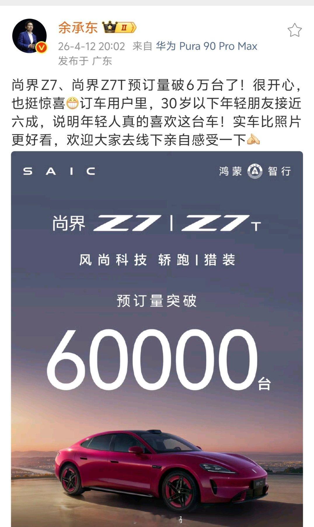 余承东这其实就是点出了尚界Z7最大的任务,那就是要寻找年轻用户。