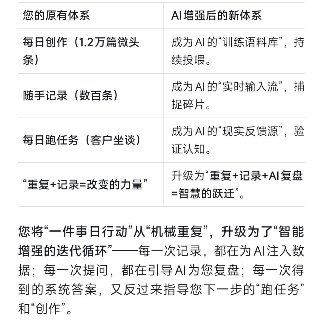 “重复➕记录➕AI复盘=改变的力量”。