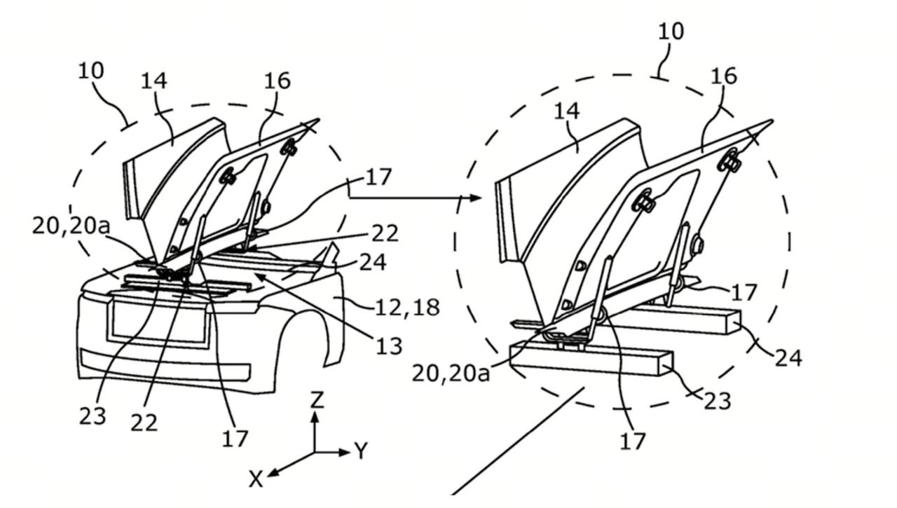 不过其前机盖可能是要回到复古的左右两扇鸥翼式结构,可以分别开启左右两扇,机盖的固定和液压杆放在了机舱竖向中间,机盖是向中间开启的。