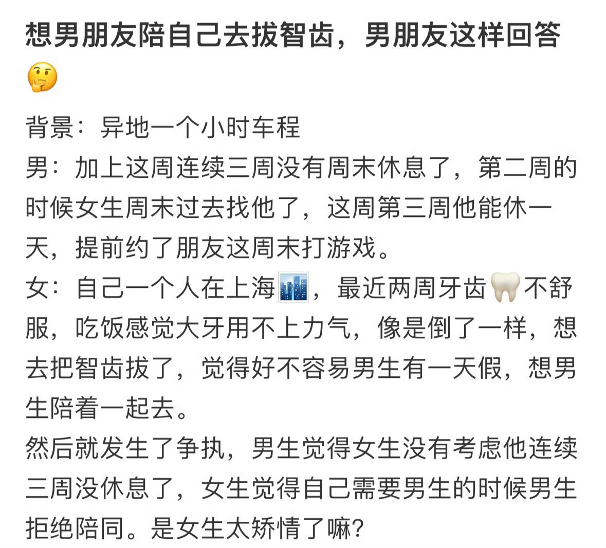想让男朋友陪我去拔智齿,男朋友这样回答