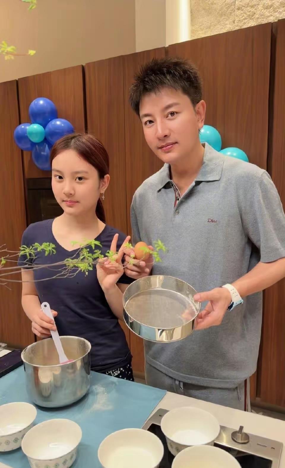 值得一提的是,父女同框,五官如同复制粘贴版,甜馨这是完美遗传了爸爸的优良基因,父女同框生日照片温馨又幸福。