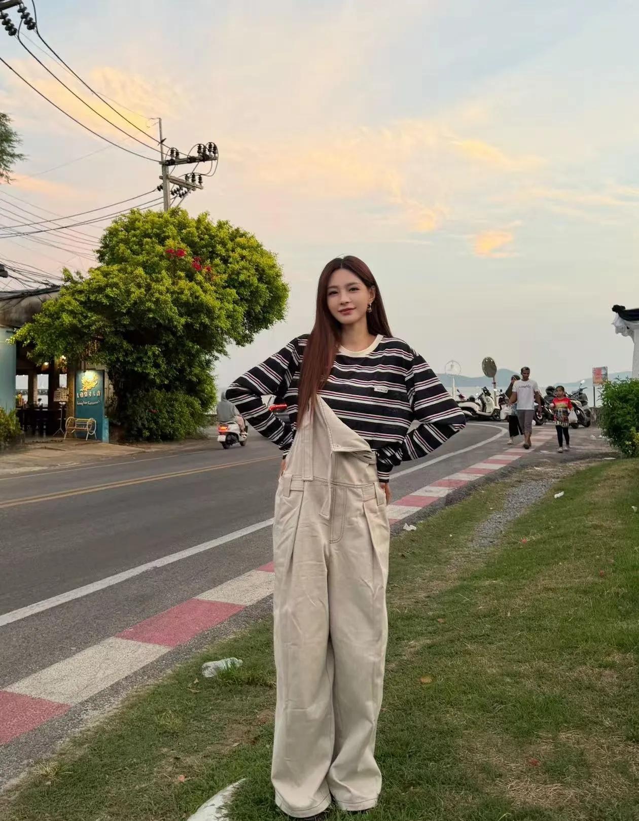 条纹T配背带裤,松弛感拉满!休闲随性又超减龄,妥妥的夏日元气少女感!