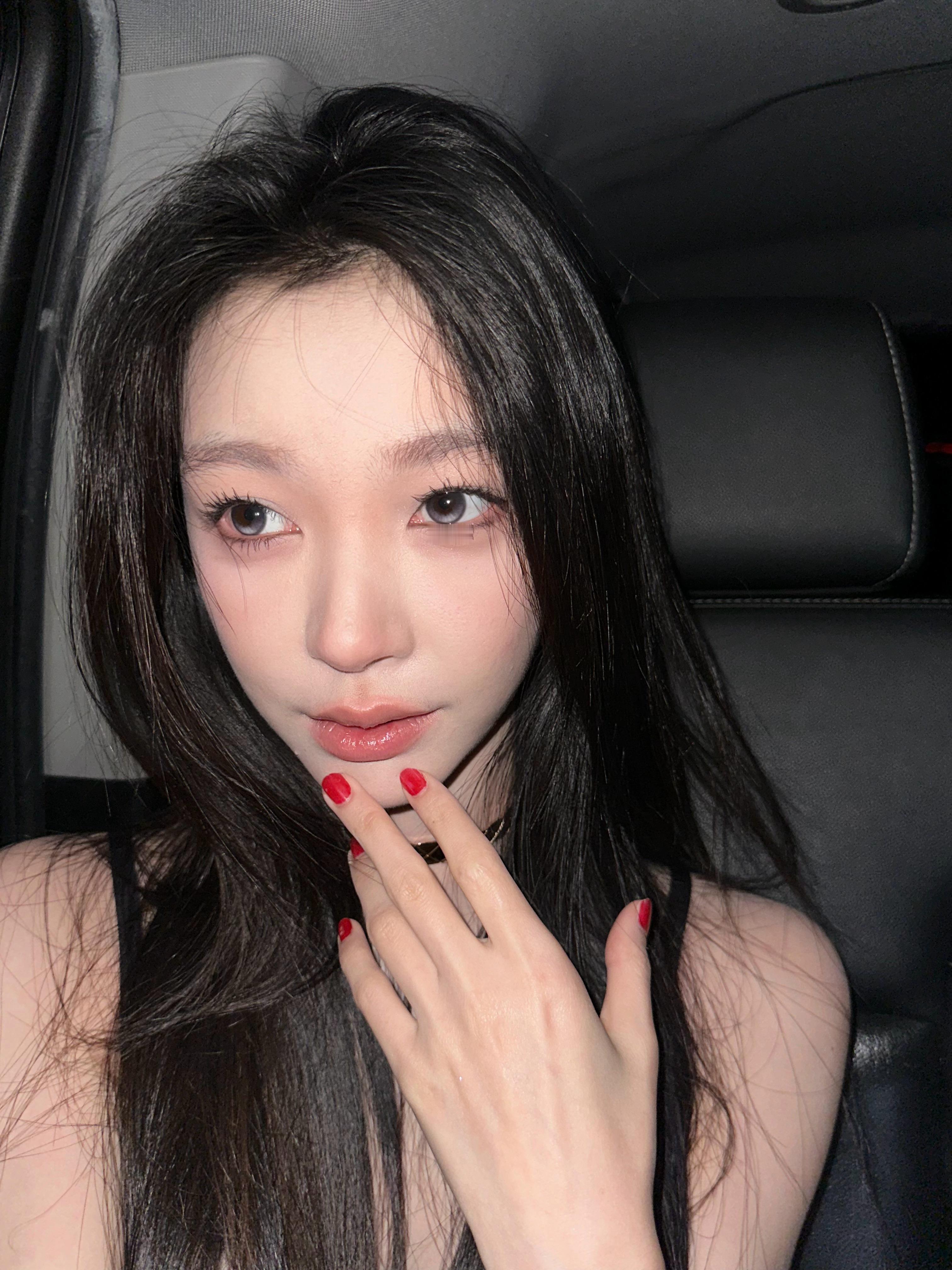 温柔甜美的少女心,蓝灰色毛衣搭配心形手势,尽显可爱与俏皮!💕🌸💖