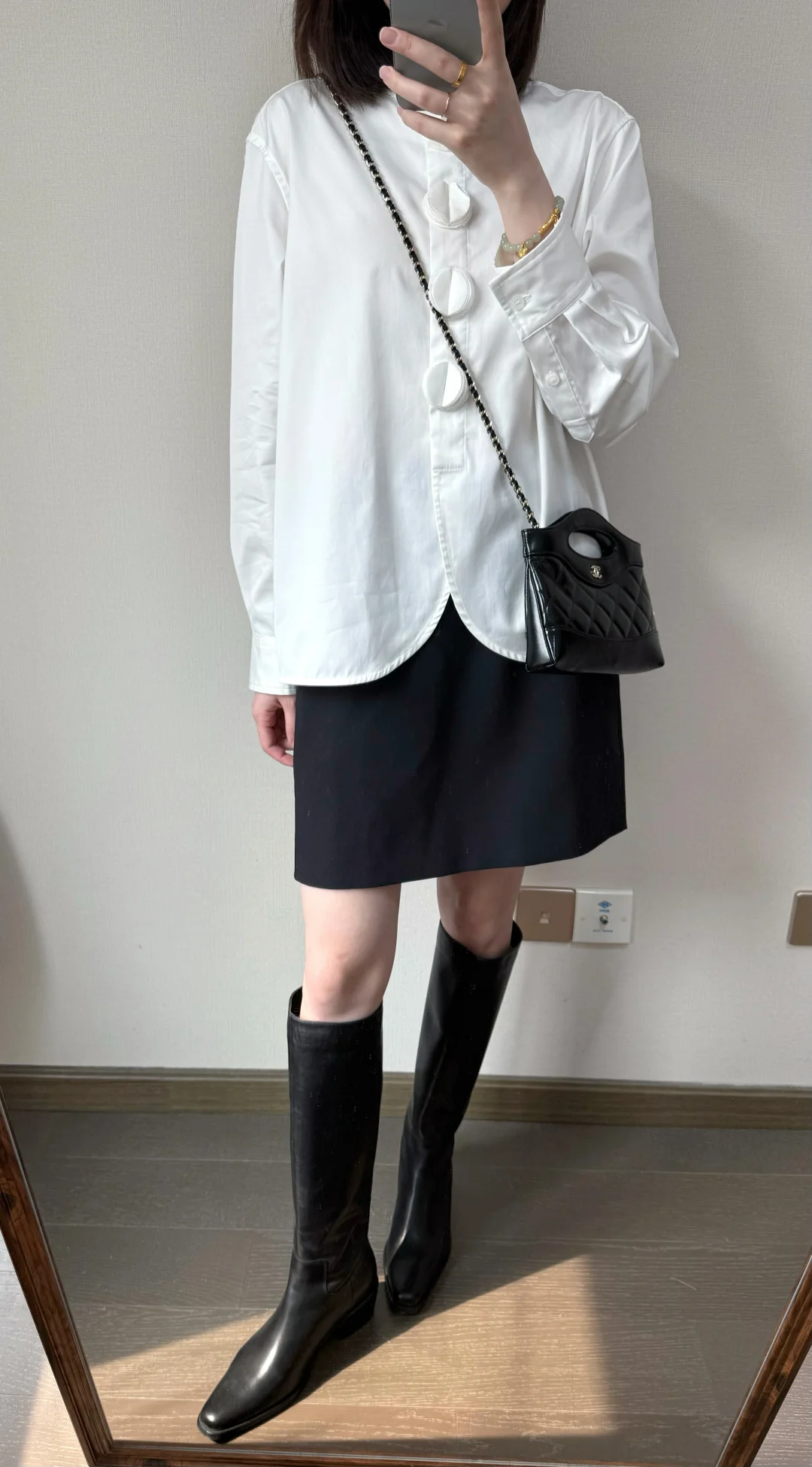 清新学院风穿搭,白色衬衫+黑色百褶裙,甜美又优雅!💕