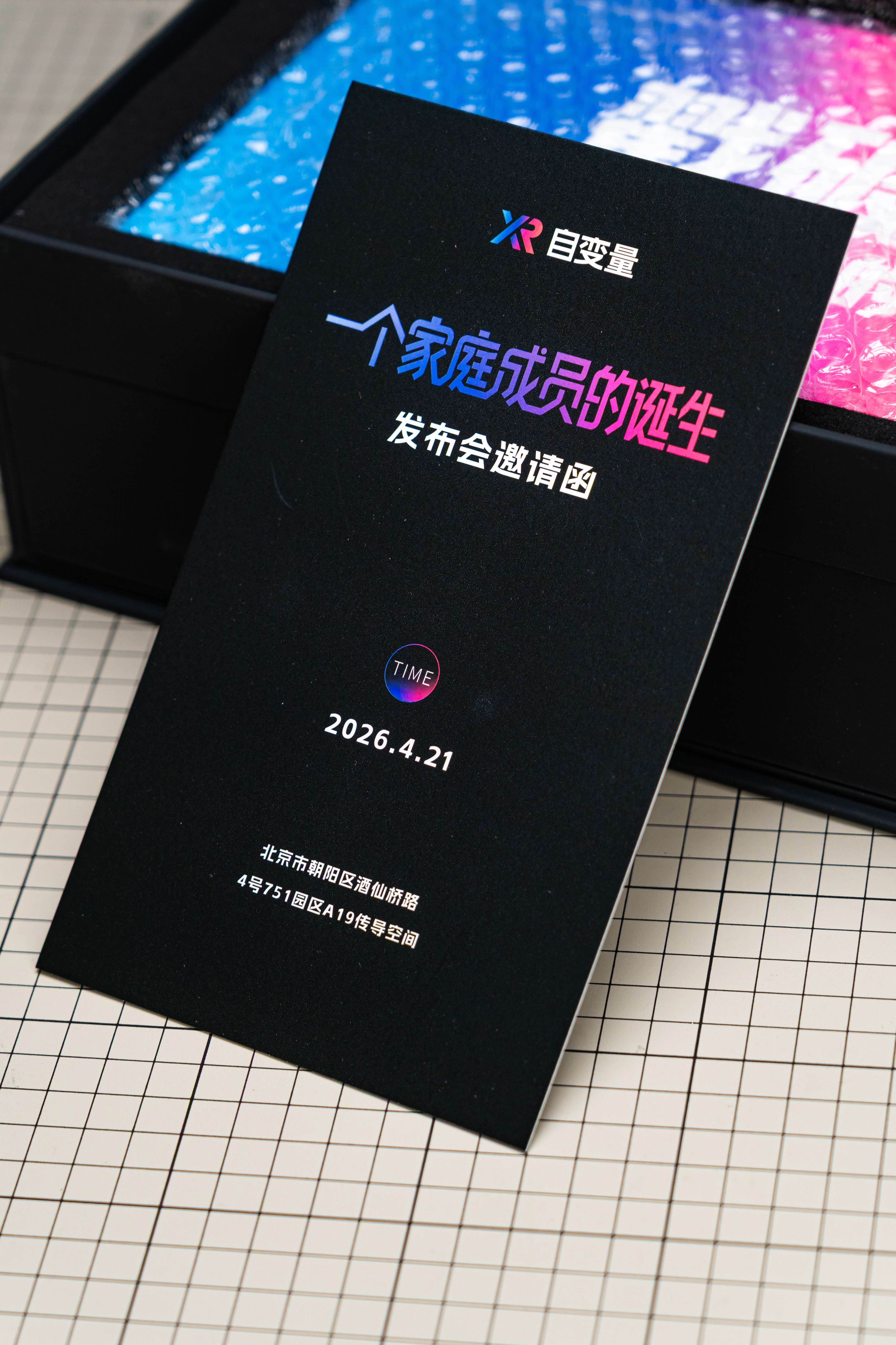 4月21日去北京看自变量发布会,主题叫做一个家庭成员的诞生 邀请函里还送了一条工
