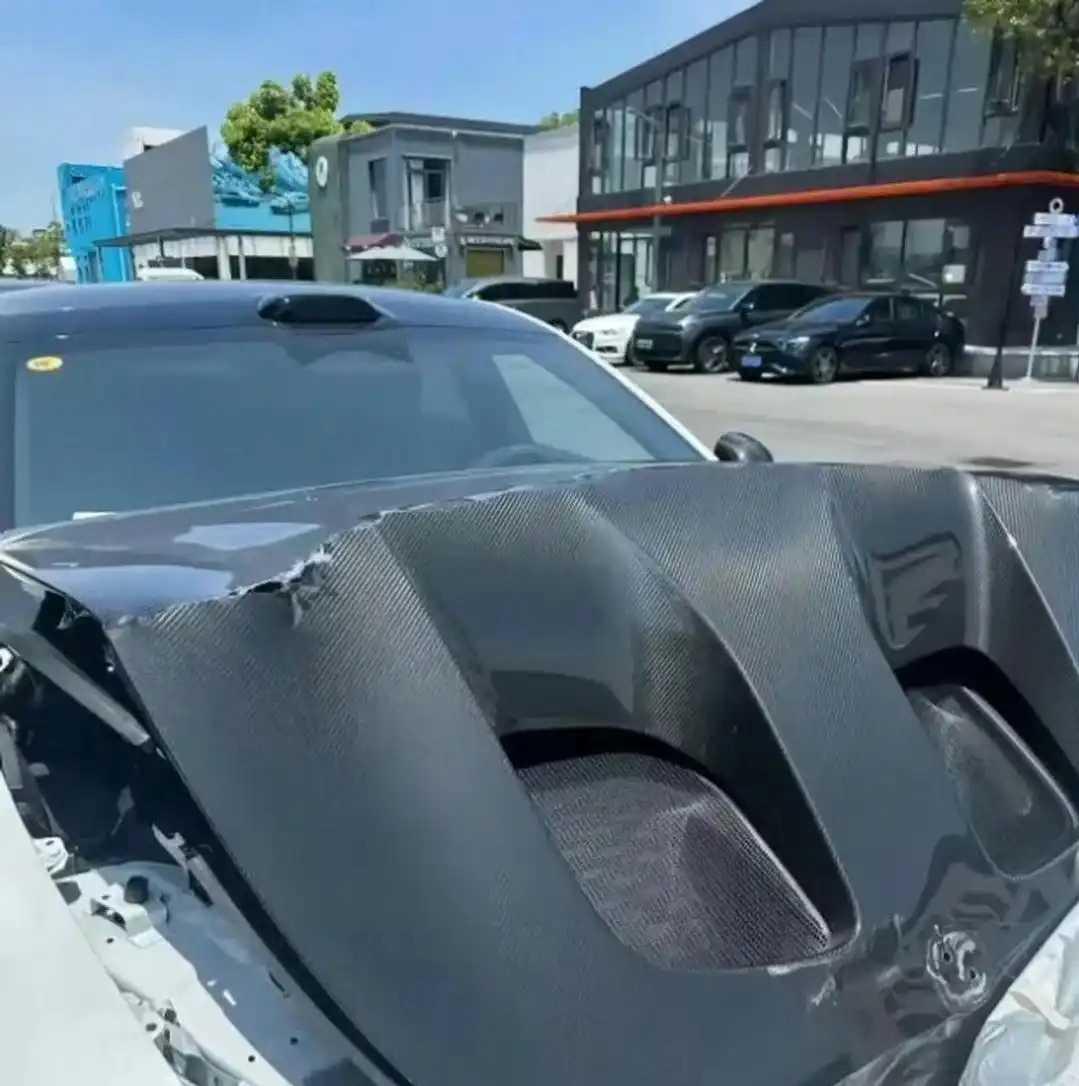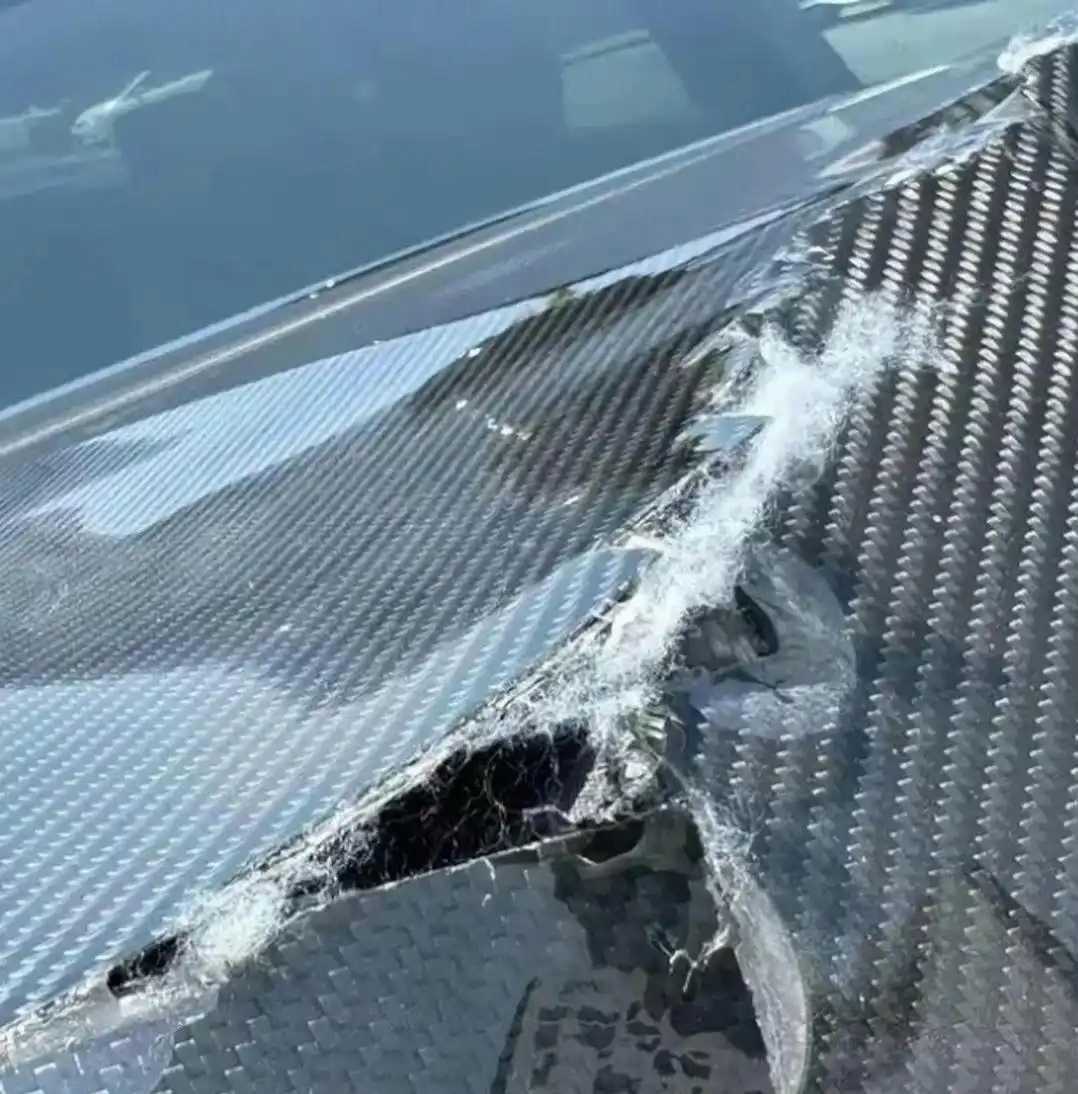 网友的小米Ultra撞了,拍了张照片问:这就是4万多的碳纤维机盖? 一个网友回答