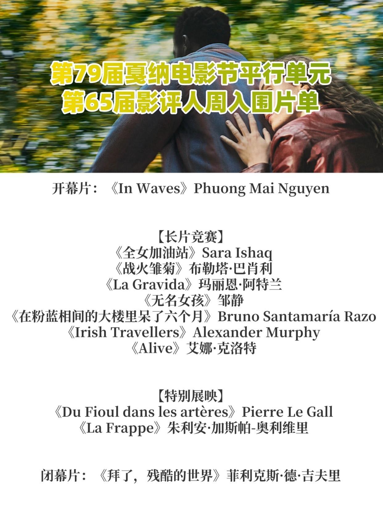 第79届戛纳电影节平行单元第65届影评人周单元公布入围片单,李庚希、祖峰、沈佳妮主演,邹静执导的华语新片《无名女孩》入围本届影评人周长篇竞赛。以下为入围片单↓ ↓ ↓