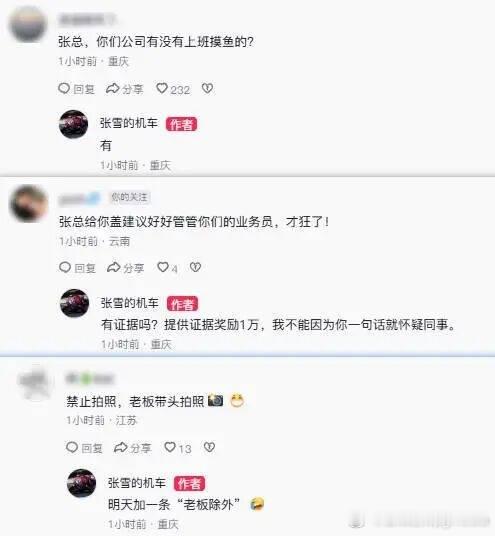 网友吐槽张雪机车业务员太狂了,张雪:提供证据、奖励1万今日,一位云南的网友在张雪的社交账号下留言,直言其公司业务员态度过于狂妄,希望加强管理。张雪看到留言后,第一时间要求投诉者提供证据,并开出万元奖励,强调处理问题需以事实为依据,既不纵容员工不当行为,也不随意冤枉同事。该网友则表示后续会收集录音等证据,私下向张雪反馈。当天上午,张雪发布公司内部视频分享管理理念,却被网友发现视频背景有“禁止拍照”标识,被指带头违反公司规定。张雪以幽默口吻回应,称会补充“老板除外”的条款,面对网友关于员工摸鱼的提问,也坦诚承认存在此类现象。此事发生前,张雪机车刚在世界超级摩托车锦标赛葡萄牙站斩获双冠,品牌热度持续攀升,公众对其管理与服务质量的关注度也随之提高。此外,张雪在接受总台采访时也表示,张雪机车之所以能在世界超级摩托车锦标赛葡萄牙站斩获双冠,底气完全来自中国制造。他表示,全球最齐全的制造门类就在中国,只要有图纸,交通工具上的任何一个零件,中国都能100%生产出来,而且品质绝不逊色于欧美日同类产品;再加上中国充足的人才支撑,二者缺一不可。此前他也曾提到,重庆的供应链体系十分齐全,一辆摩托车的上万个零部件,在重庆本地就能全部配齐,而此次夺冠的车辆,全车配件更是实现了“纯国产”。