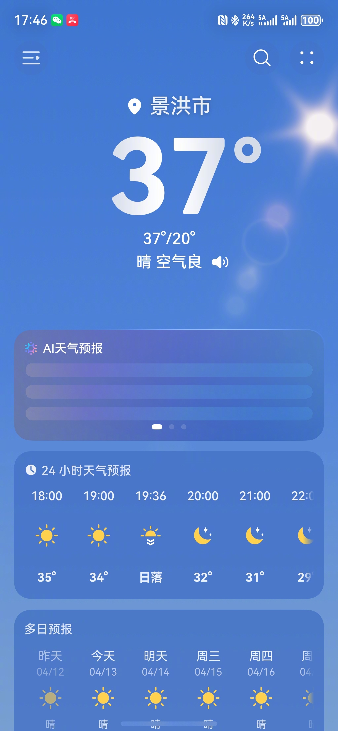 昨天刚说西双版纳现在温度舒服……那是晚上……现在18点,气温37度