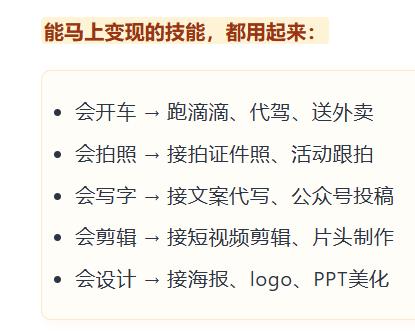 会开车就跑滴滴、代驾,会剪辑就接短视频单,会写字就帮人代写文案,先解决吃饭问题,才有资格谈未来。别觉得转行难,我认识一个做地产销售的大哥,转行做宠物美容,靠之前的客户维护经验,现在月入过万,比以前还香!