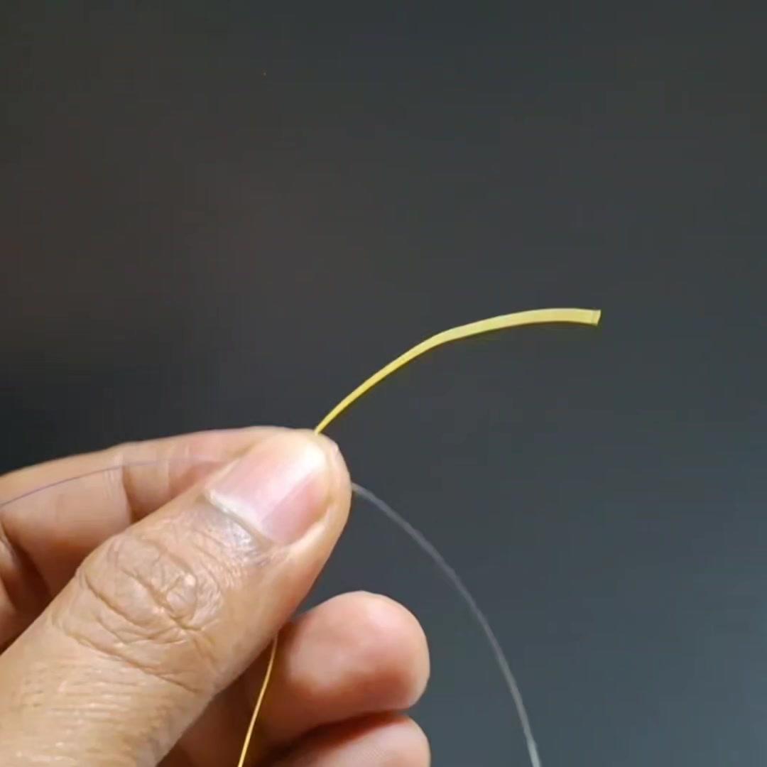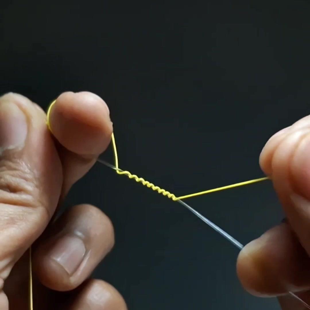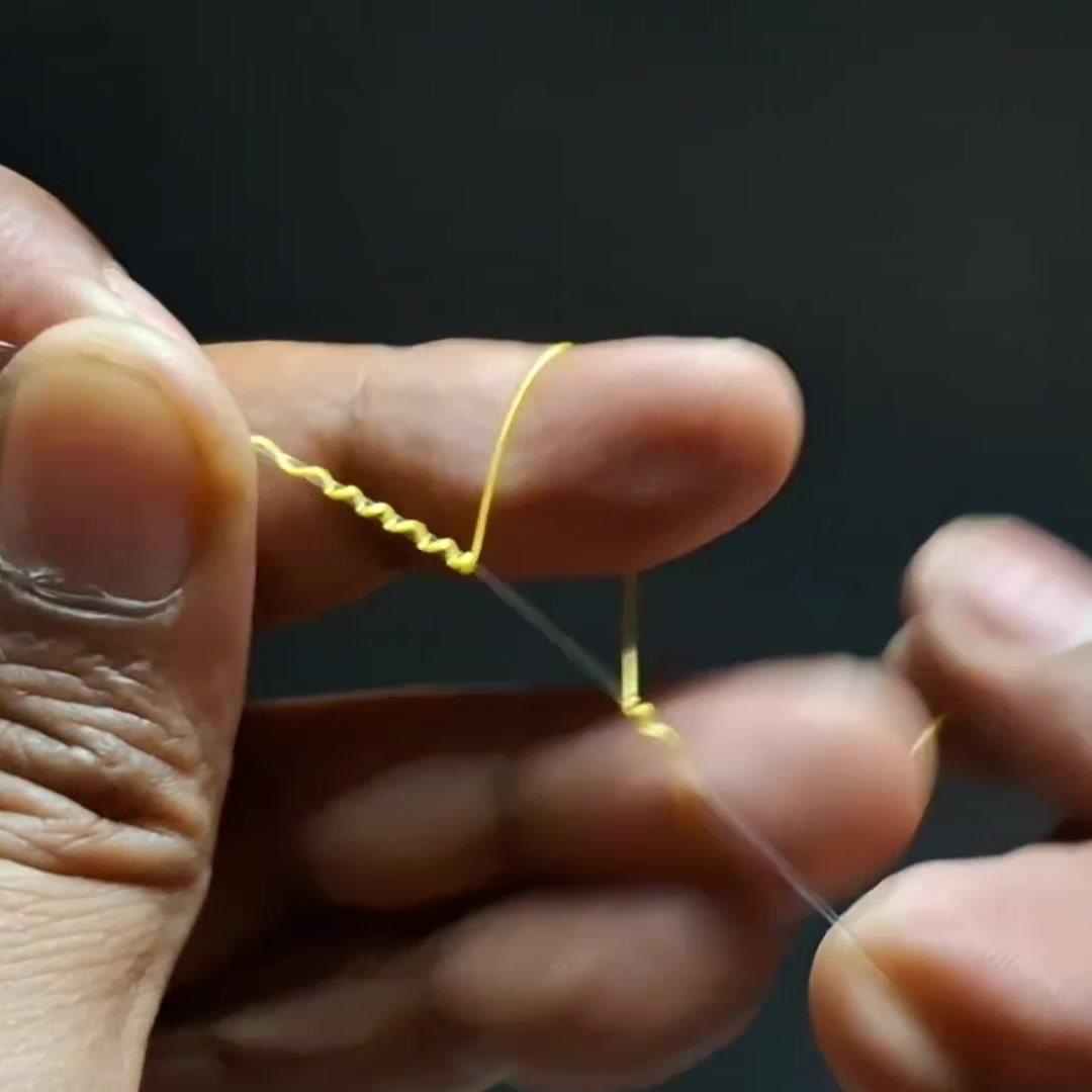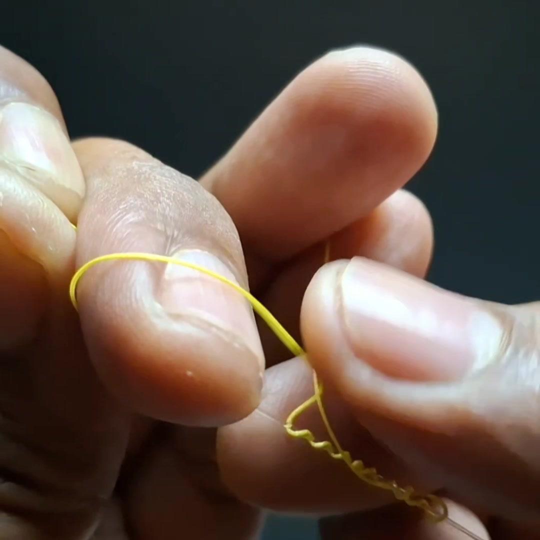🤔路亚新手必看!前导线绑法原来这么简单~ 1️⃣准备材料:鱼钩、线、剪刀、导线环,先在导线环上穿线。 2️⃣打结技巧:用“双线结”绕线,穿过环后拉回,绕两圈再重复1次,最后剪去多余线头,剪线时注意留一点以防脱落。