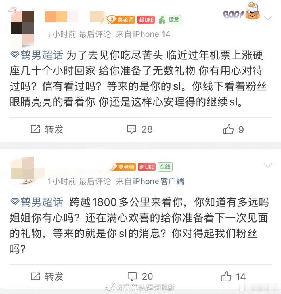 鹤男粉丝手撕鹤男,粉丝锐评:上天入地再也找不到这么爱私联的艺人了。看了下粉丝发的