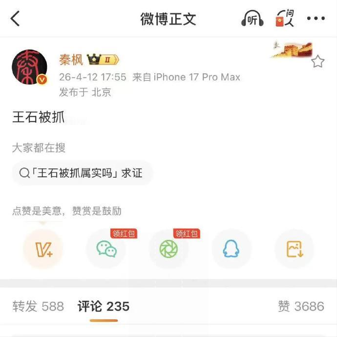 王石“被抓”的谣言虽已被辟谣,但当秦枫微博爆料的时候,评论区反响为什么这么激烈,这份普通大众的情绪是积压多年的不满找到了宣泄口。