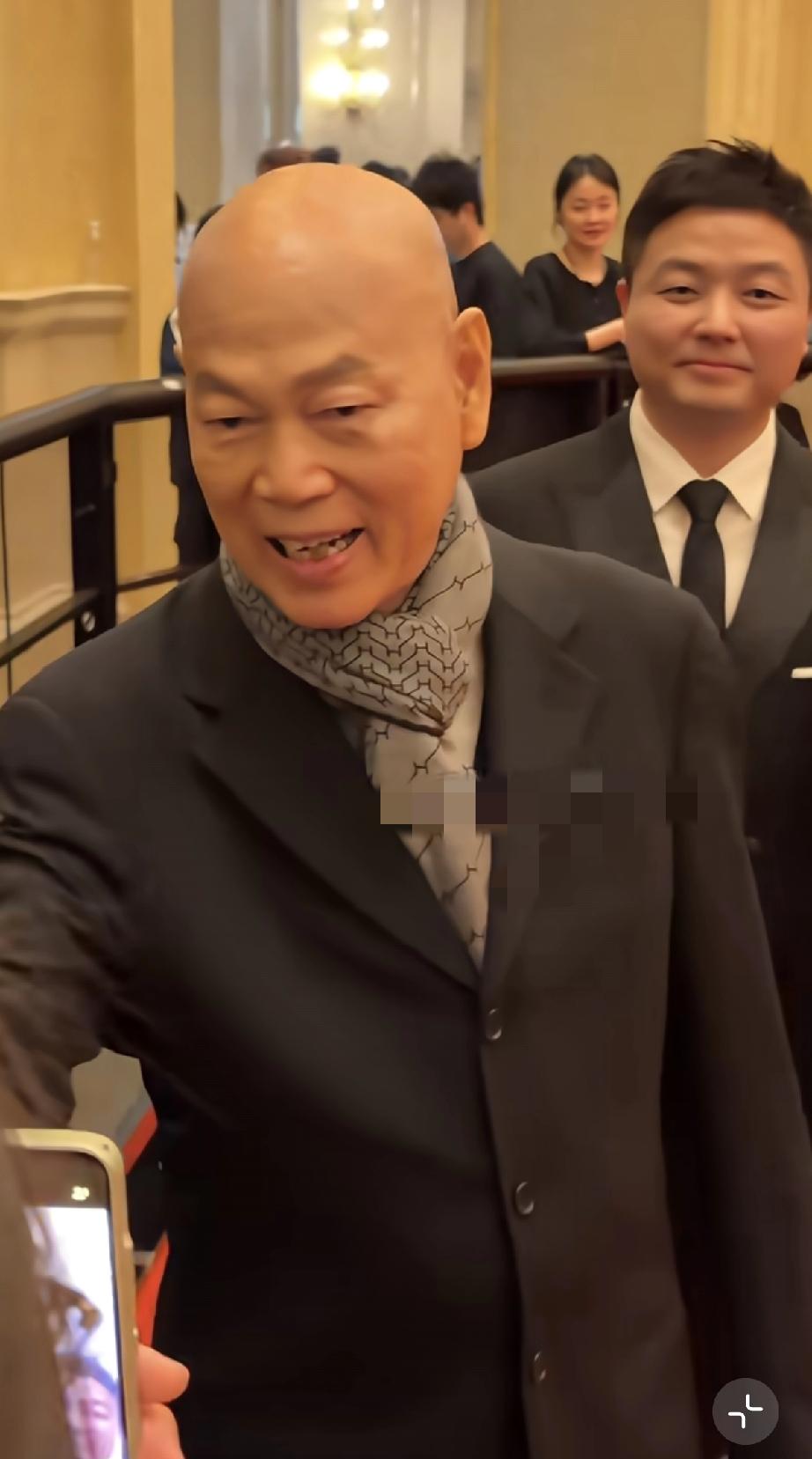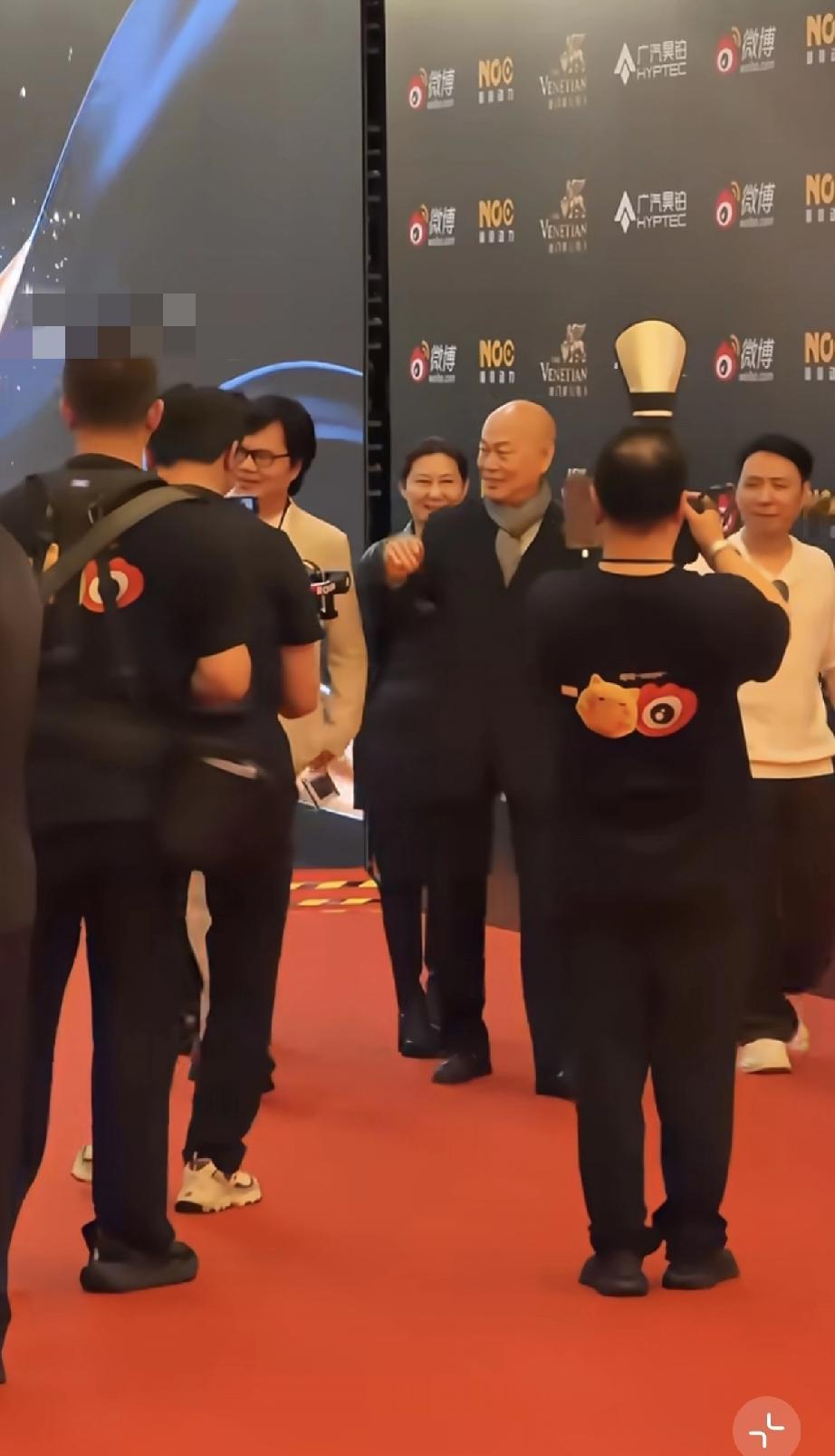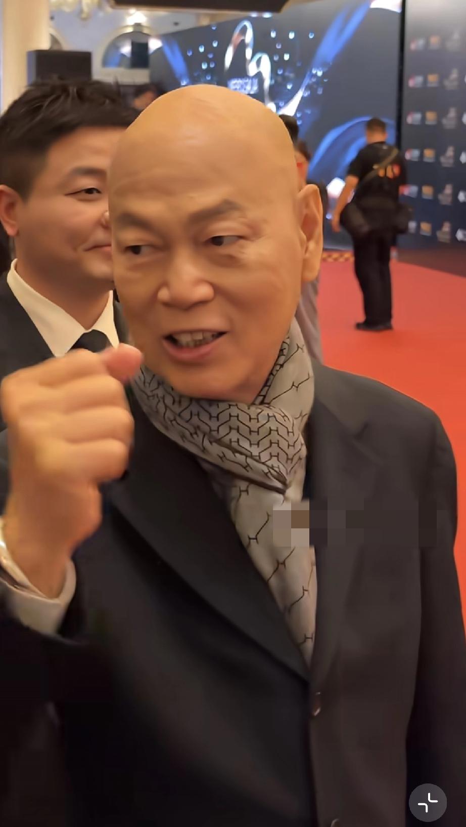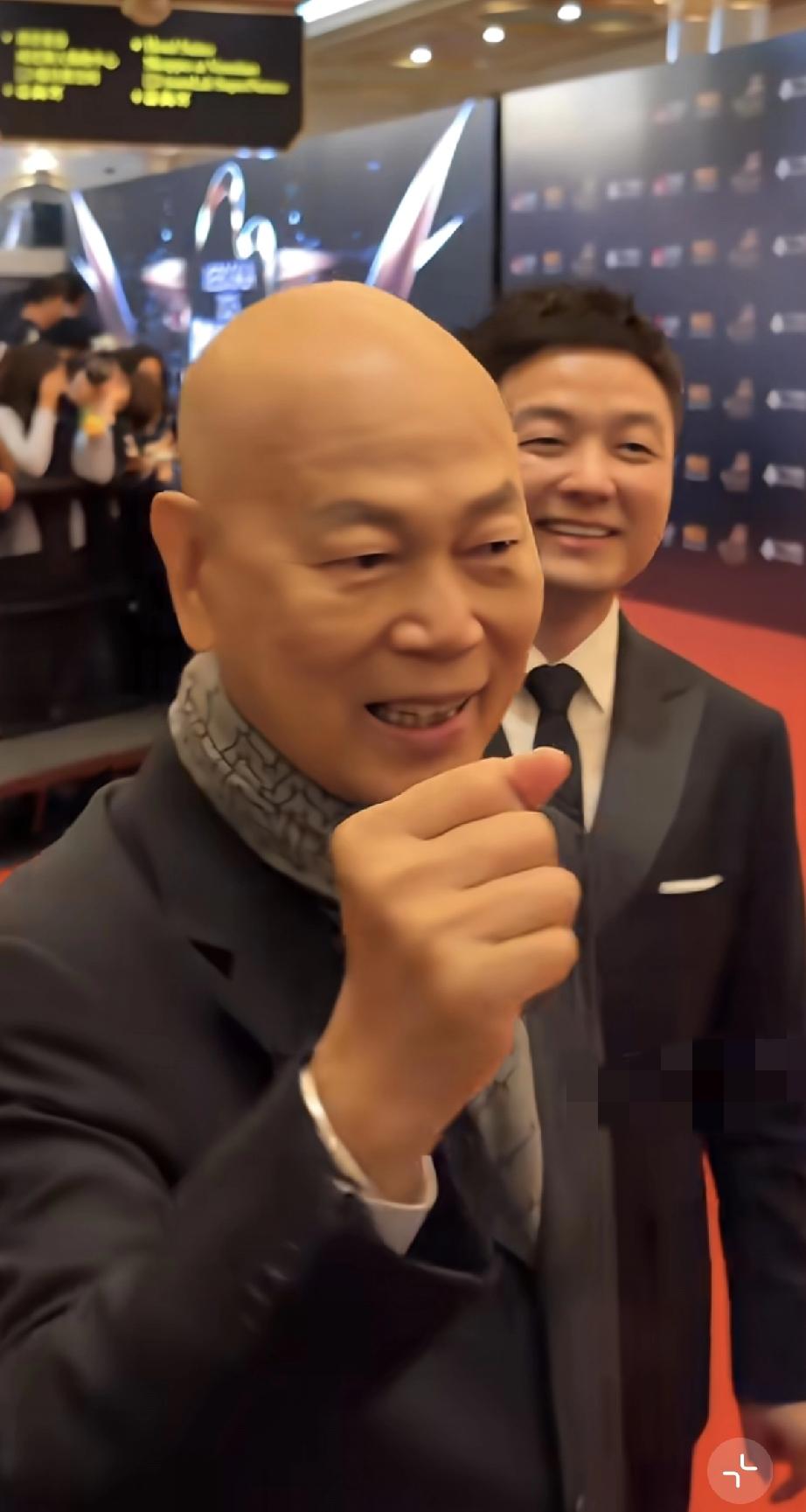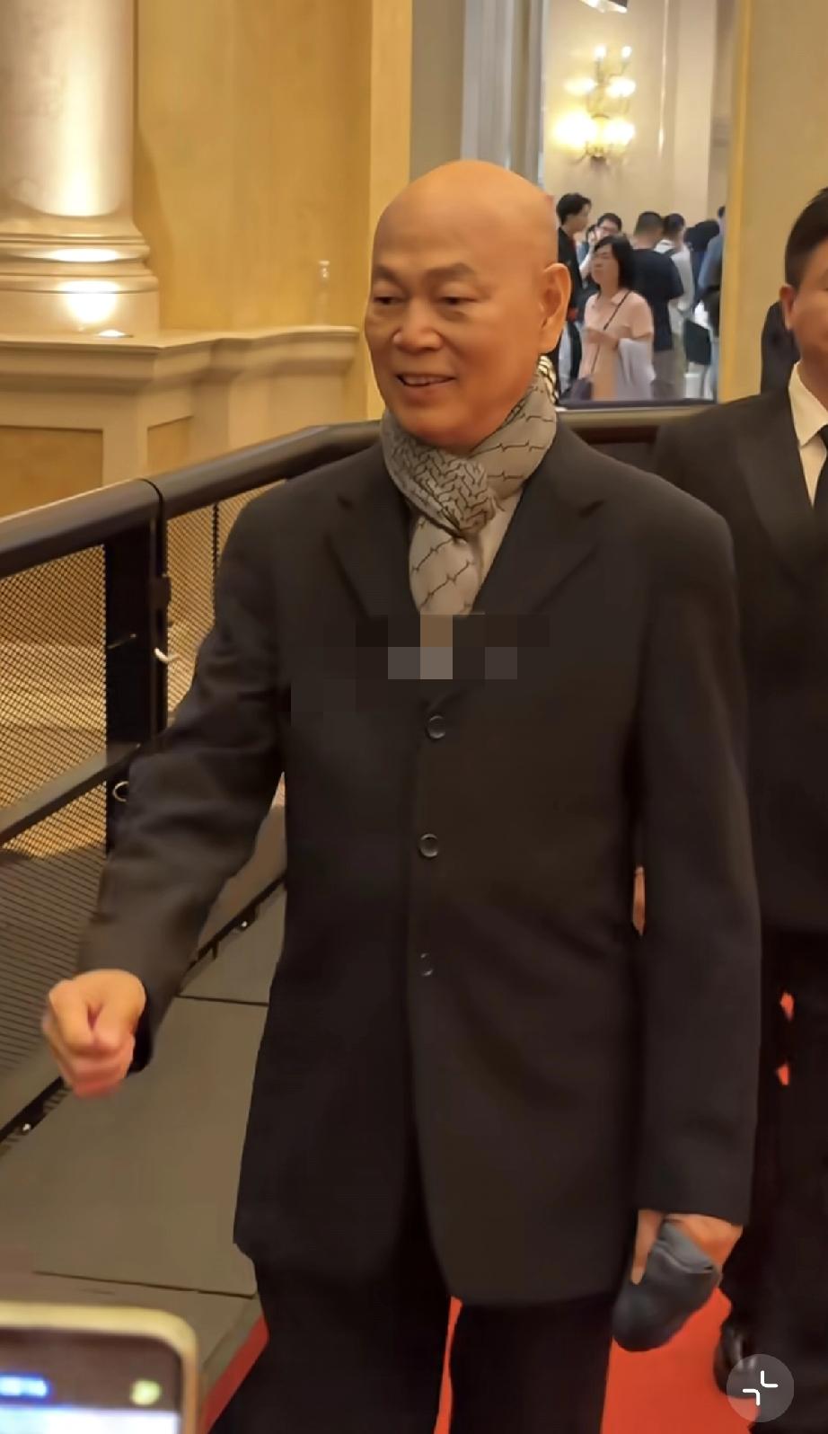 罗家英这次参加的是跟他的粤剧有关的活动,因此他格外开心,他穿得好厚啊,本来现在澳门是快到夏天了,很热的,有的人已经穿上了短袖。