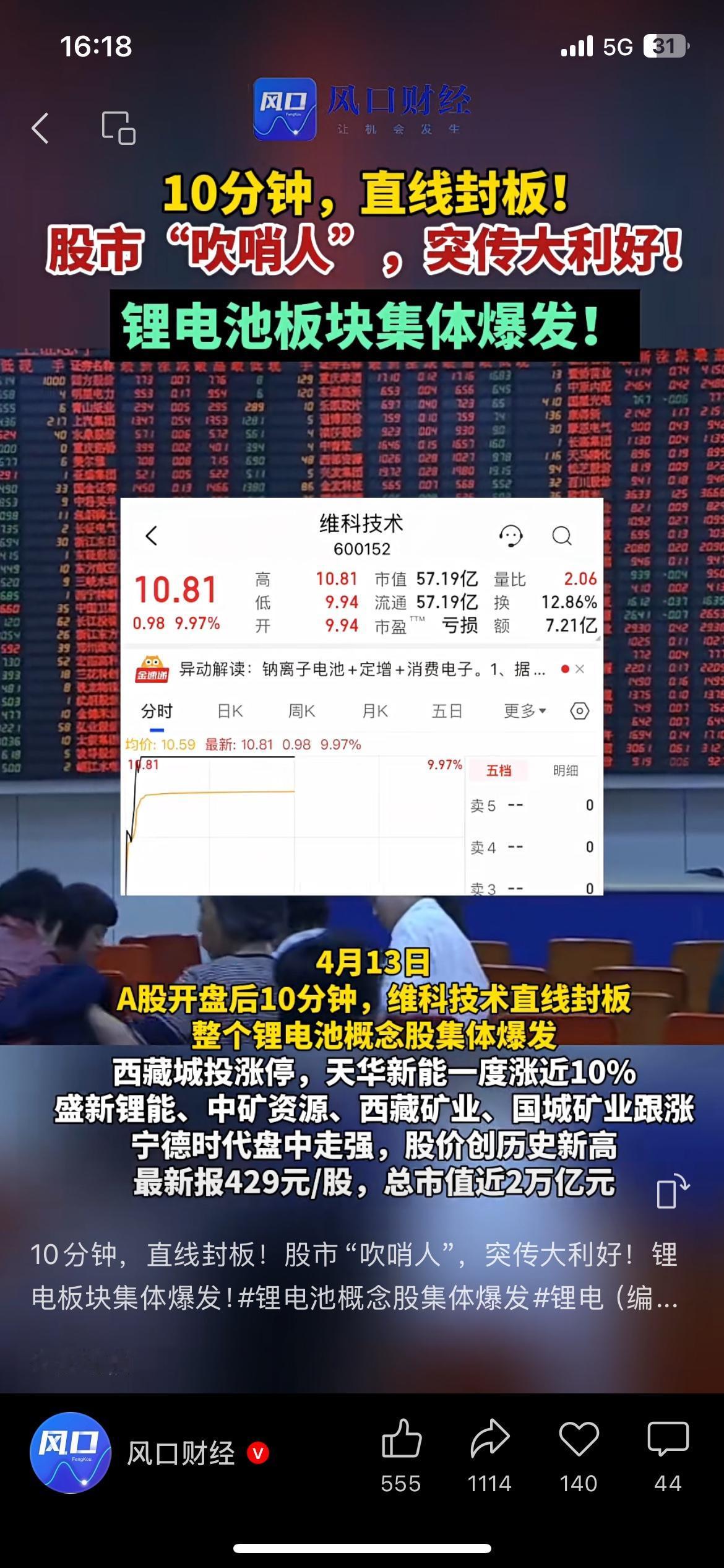 10分钟直线封板!锂电池板块集体爆发