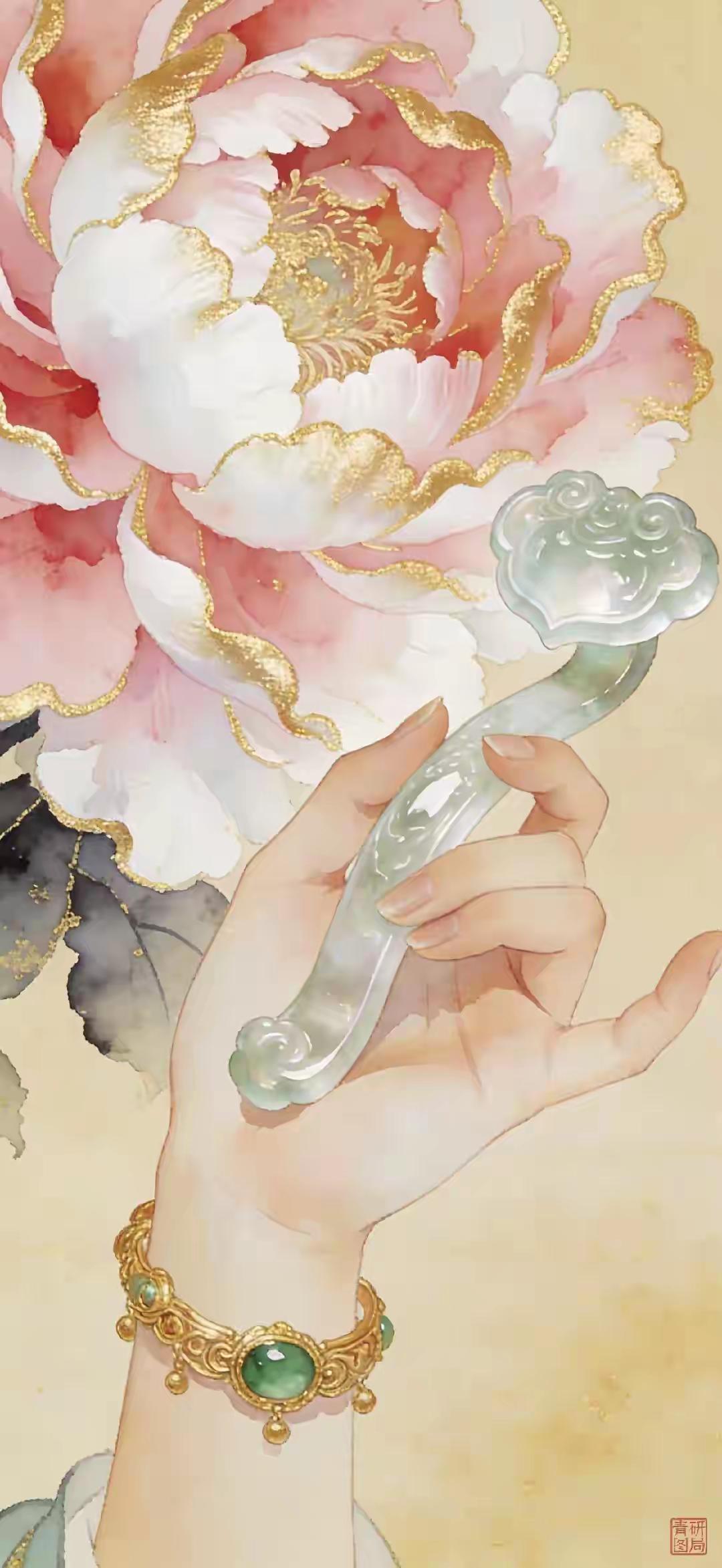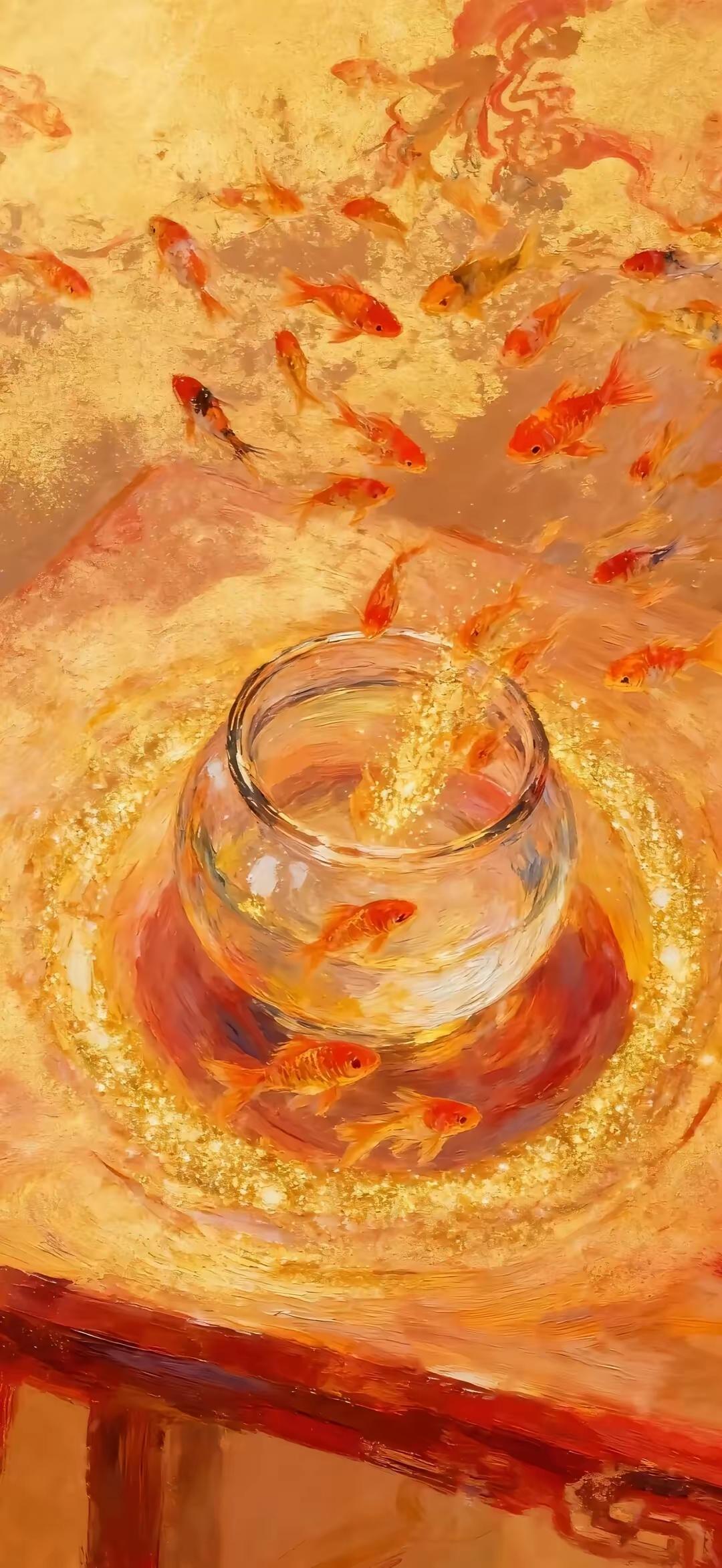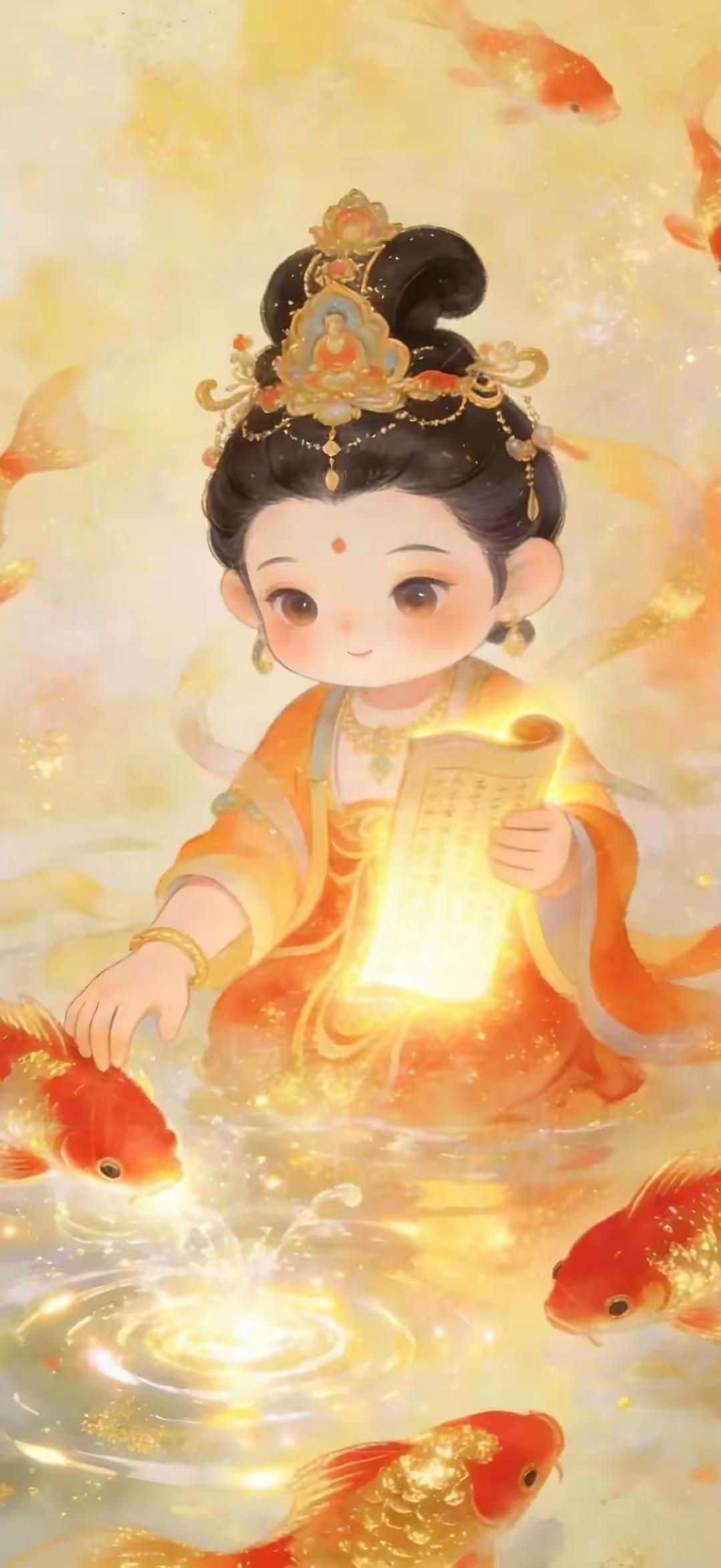 招财壁纸~掌间百财聚来,月畔仙姿悠然,锦鲤踏浪衔金 愿你岁岁有金玉满盈的富足,时