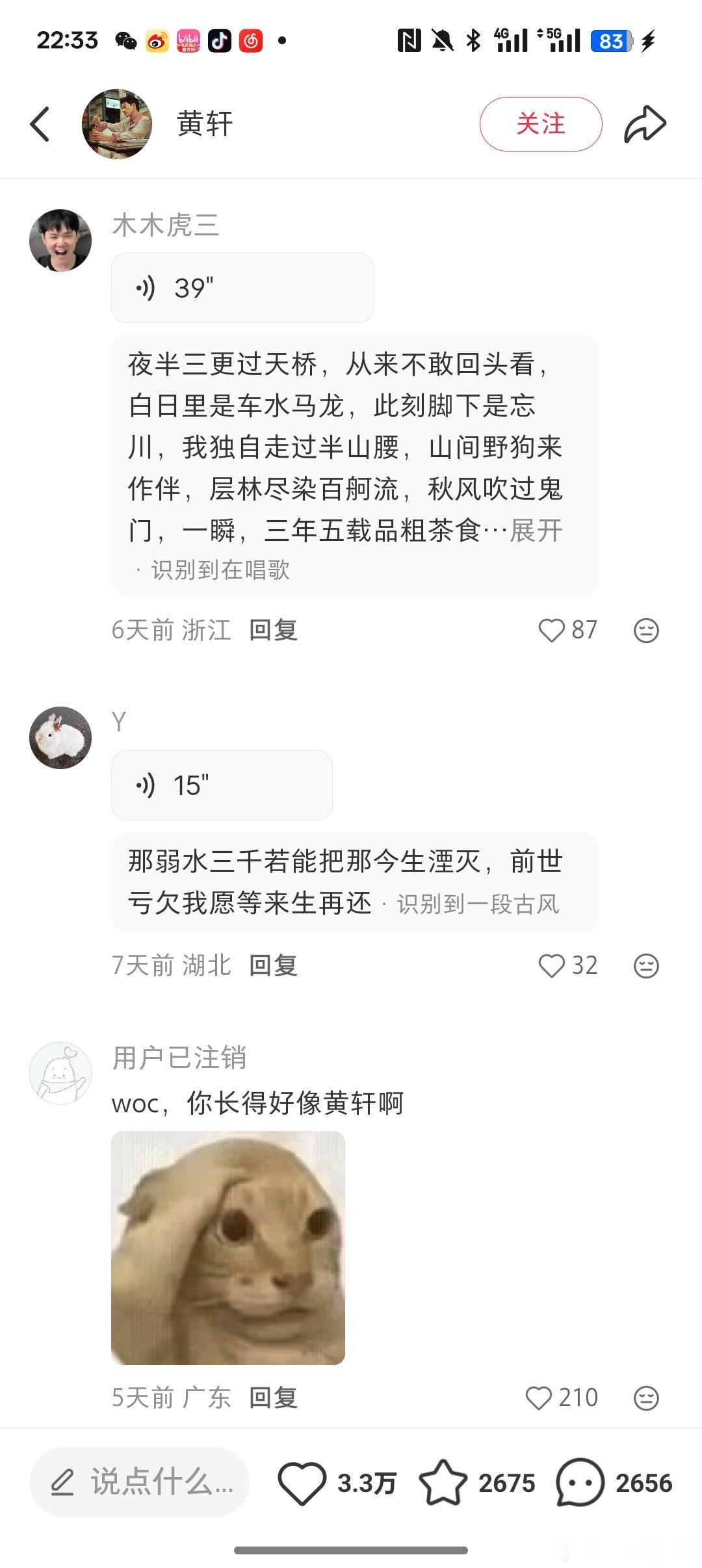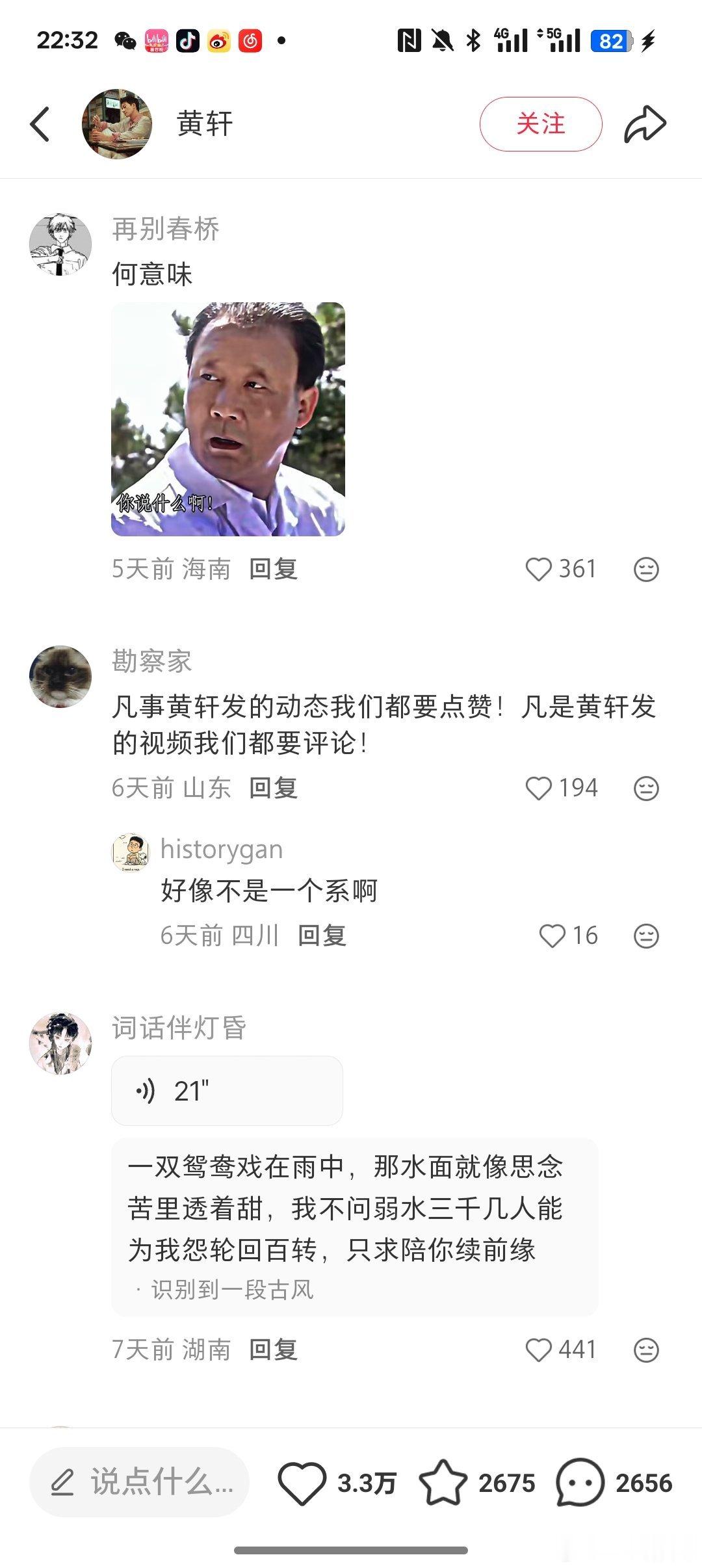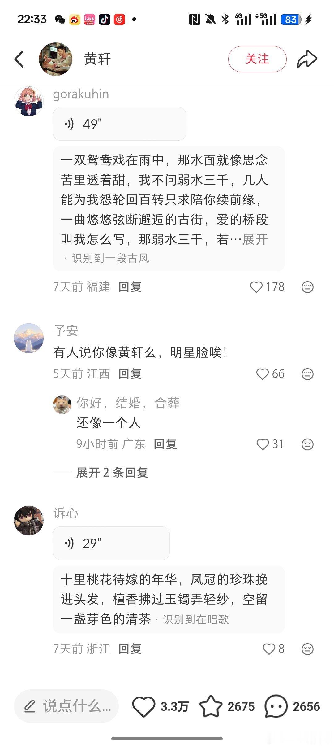 笑不活了,家人们,黄轩评论区简直是大型国风歌曲演唱现场,进去听着听着就走不出来了