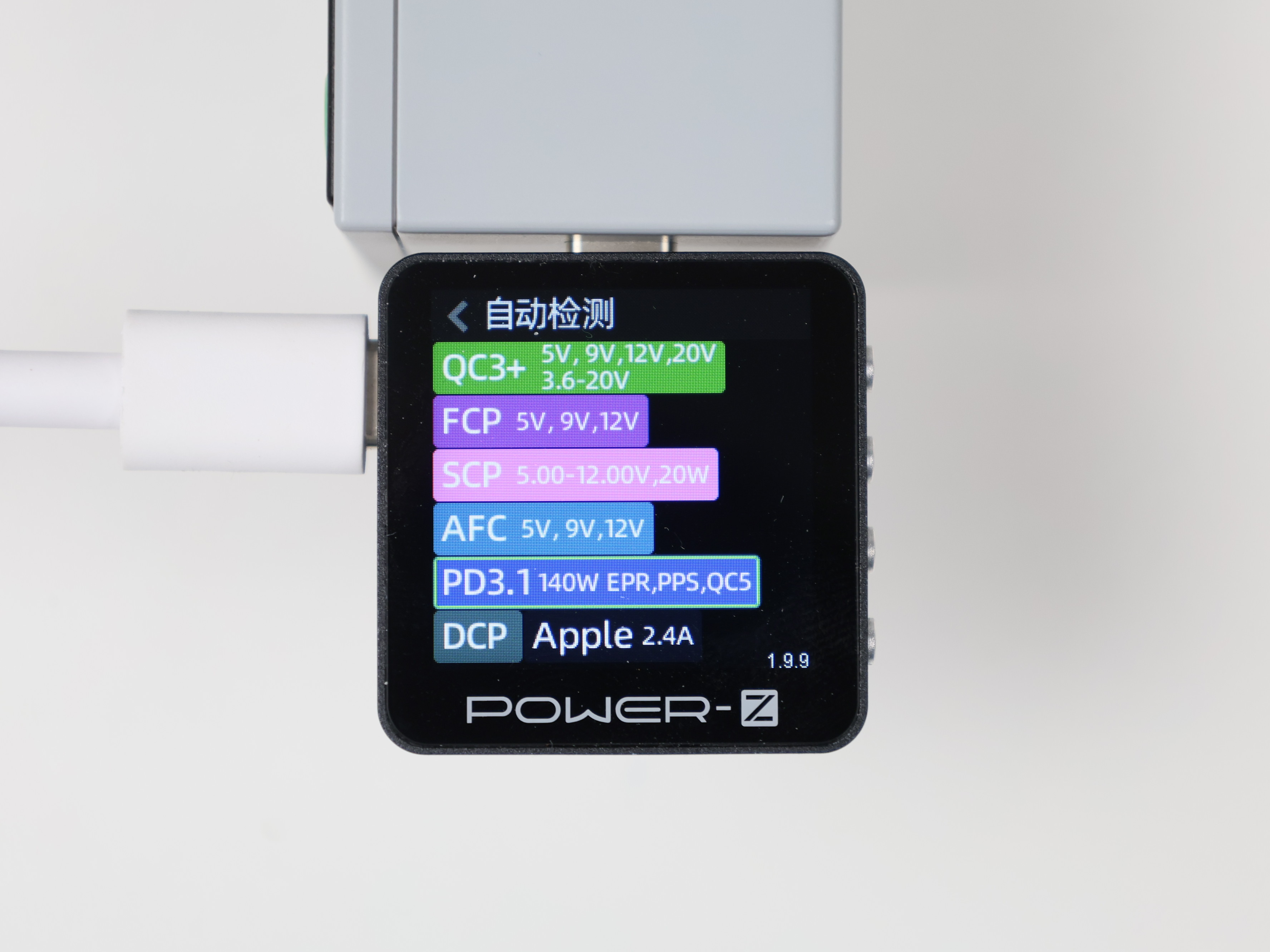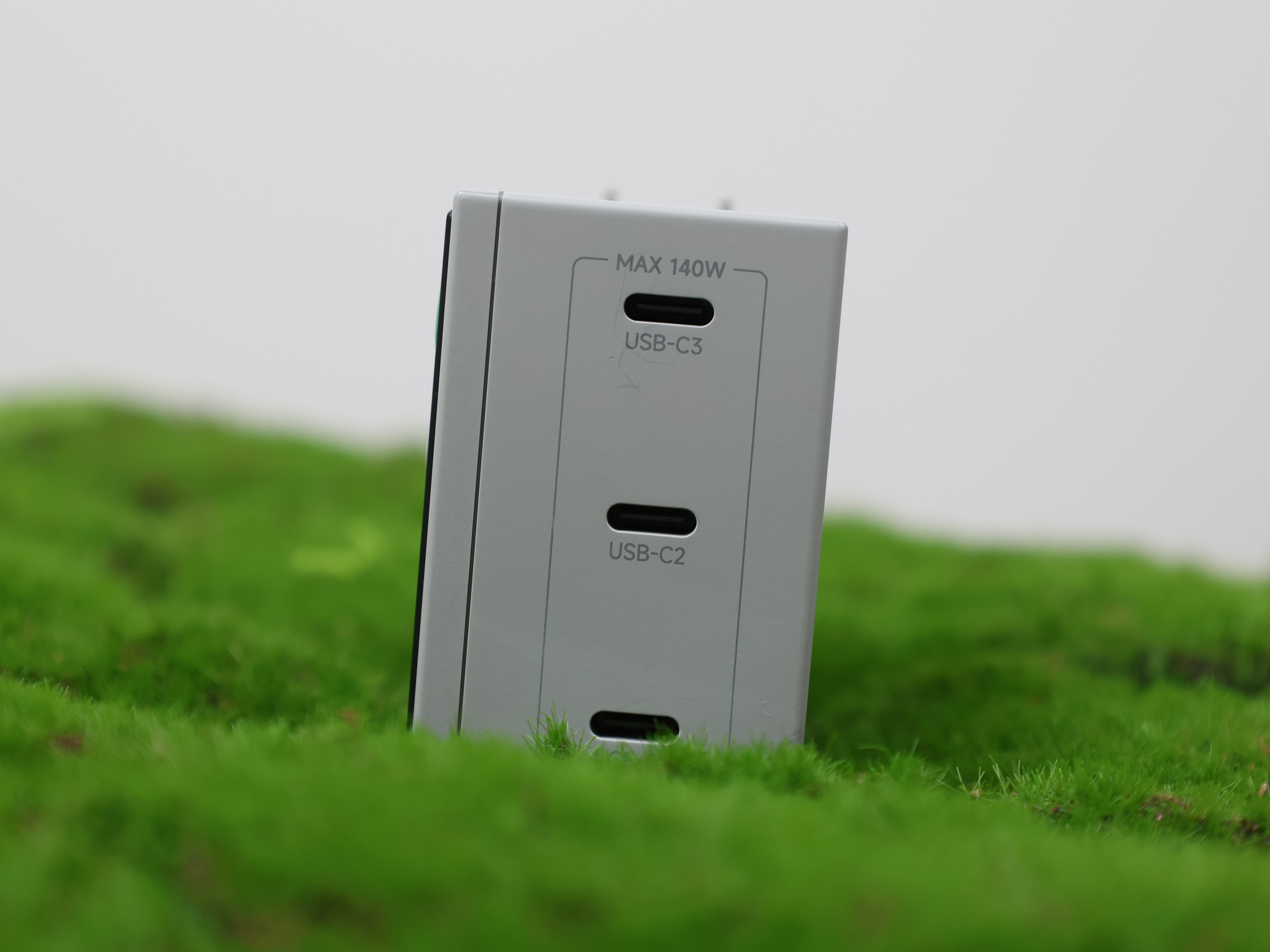实测支持140w功率,支持的协议很全DCP、FCP、SCP、PD3.1 140W等,协议很全,而且支持智能充电插拔不断联,3个C口每个都支持最大140W。3口同出为45W+45W+30W。