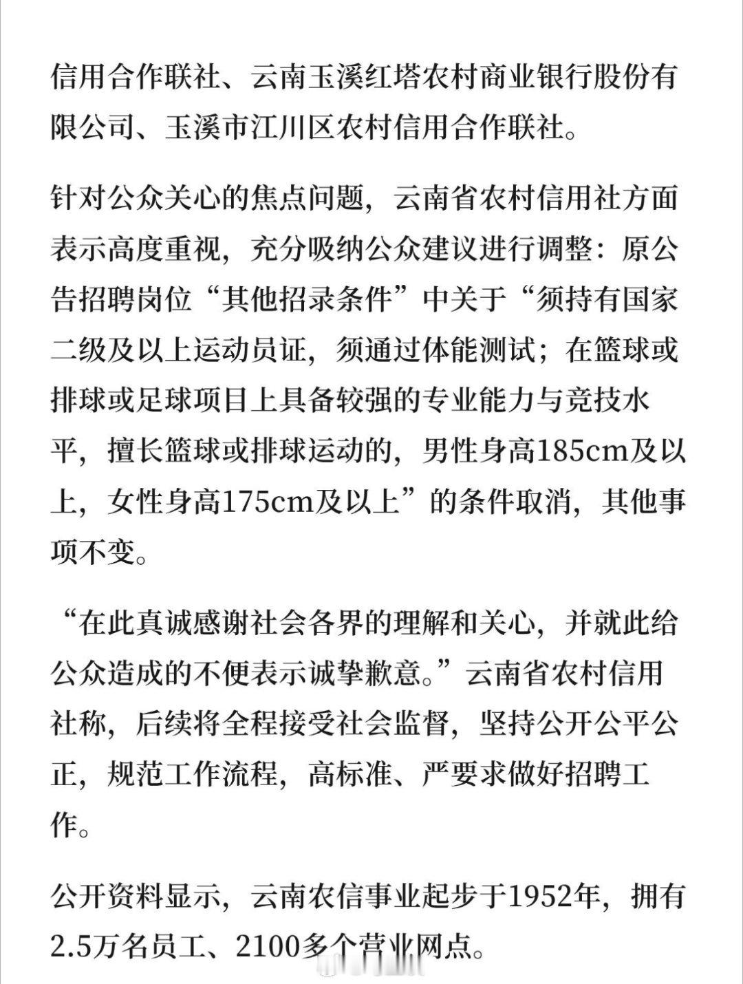银行招聘被指萝卜岗后撤争议条款云南农信社回应招聘被质疑萝卜岗