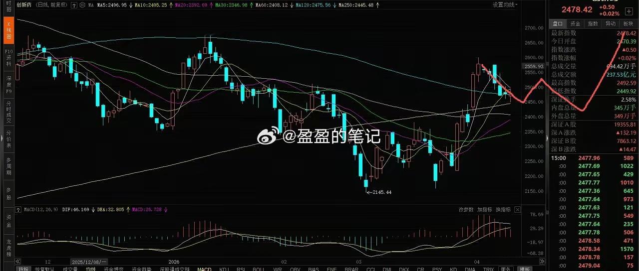 创新药调整第6天,生物医药、创新药走势分析港股创新药本次先于大盘反弹,也先于大盘开始调整,港股创新药回调了4个工作日,A股生物医药、创新回调了6个工作日,从时间来看,依旧需要等待。具体技术走势如下:1、港股创新药。突破了120日均线压力位,随后开始回调,回调了4天左右,时间和空间还不够。这里突破的是60、120日均线,60、120均线确认有效突破时间至少需要2周以上,也就是说还需要再继续等。如果着急想进场的,就分批低吸。A股创新药回调了6个工作日,已经回踩到了120日均线,这里明天反弹概率大,但是整体上时间还不够,至少需要形成一个a-b-c小级别调整结构才能形成比较好的上涨中继。保持耐心。明天调整第7天,从时间来看,可以适当低吸。2、生物医药。相对更弱一些,一直在120均线下方震荡,目前还在为突破120均线作准备,时间上参考创新药。