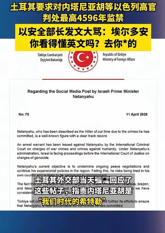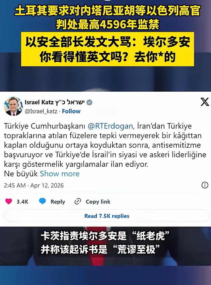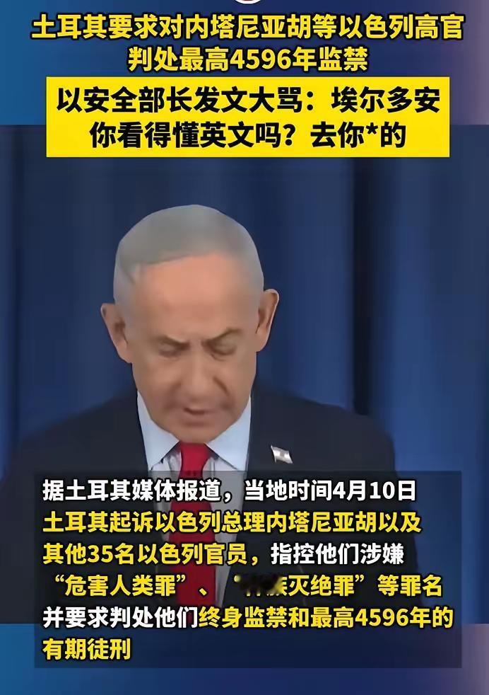 土耳其总统埃尔多安又出幺蛾子,给以色列官员们判刑,气得以色列安全部长大骂埃尔多安。