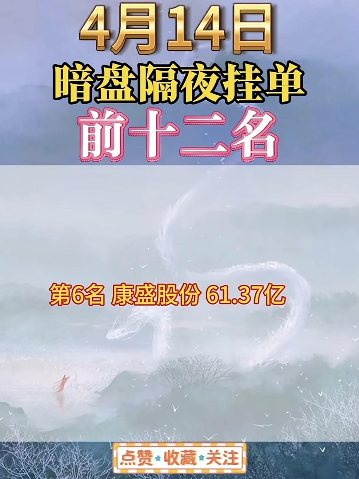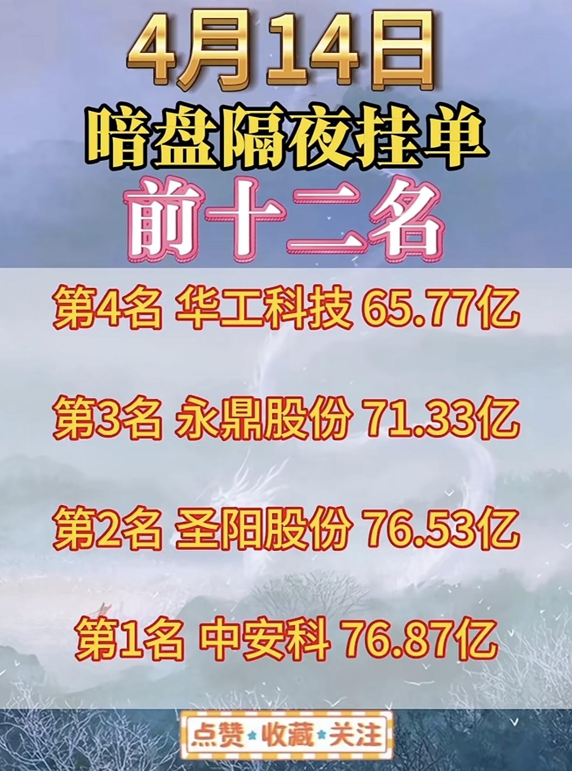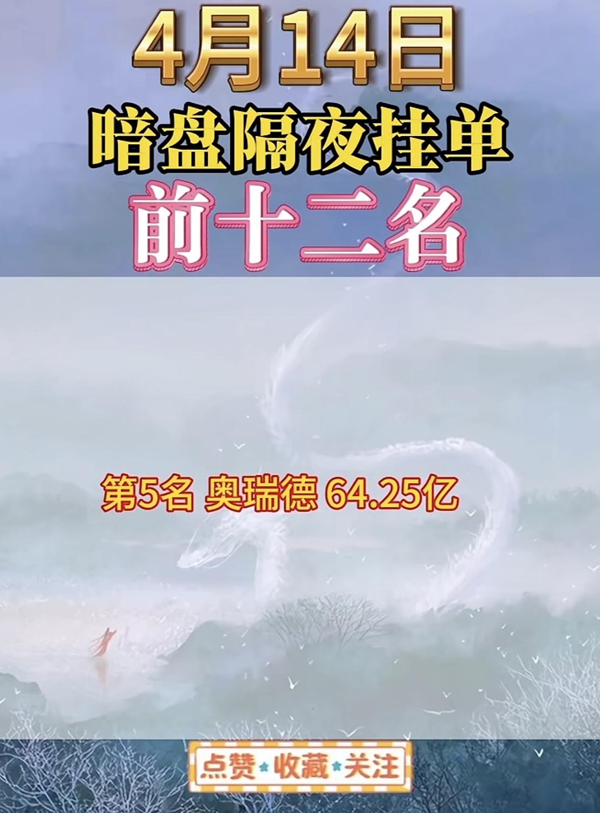 4月14日周二暗盘隔夜挂单排行榜出炉
